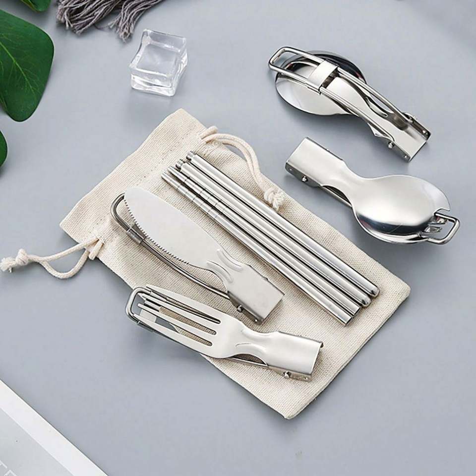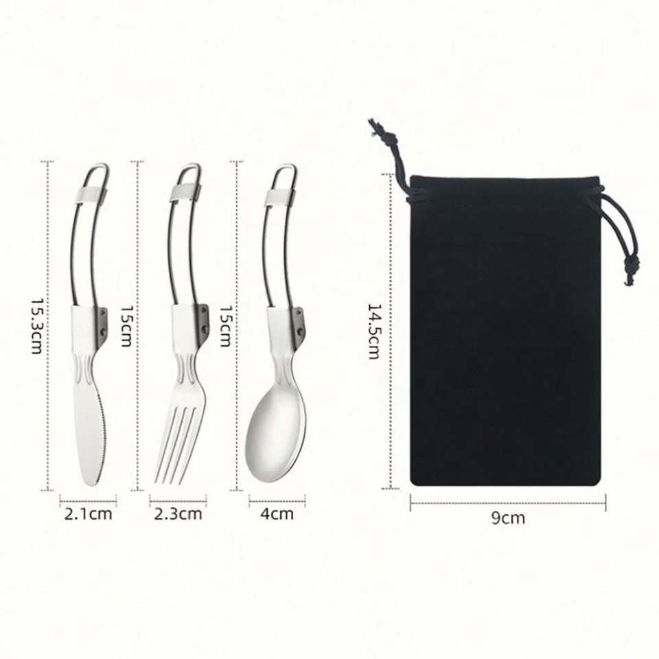 Juego de Cubiertos Plegables de Acero Inoxidable 304 con Acabado Espejo y Logotipo Personalizado, con Estuche de Almacenamiento