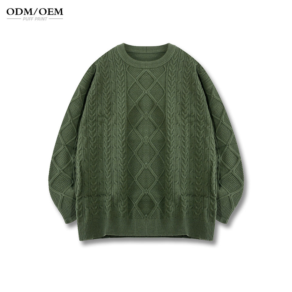 Suéter Personalizado con Logotipo OEM y ODM para Hombre, Suéter de Punto con Estampado en Relieve, Jersey de Punto de Manga Larga, Suéter de Punto Personalizado de Algodón para Hombre de Invierno
