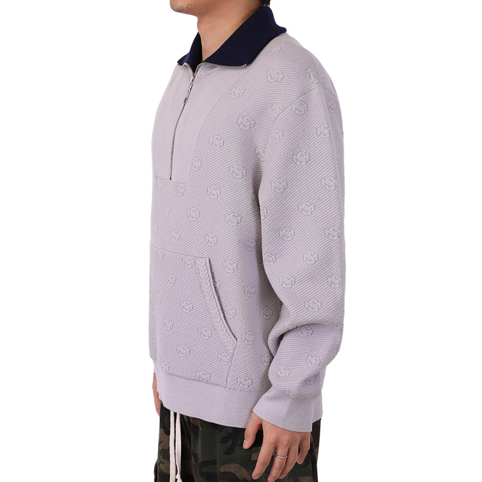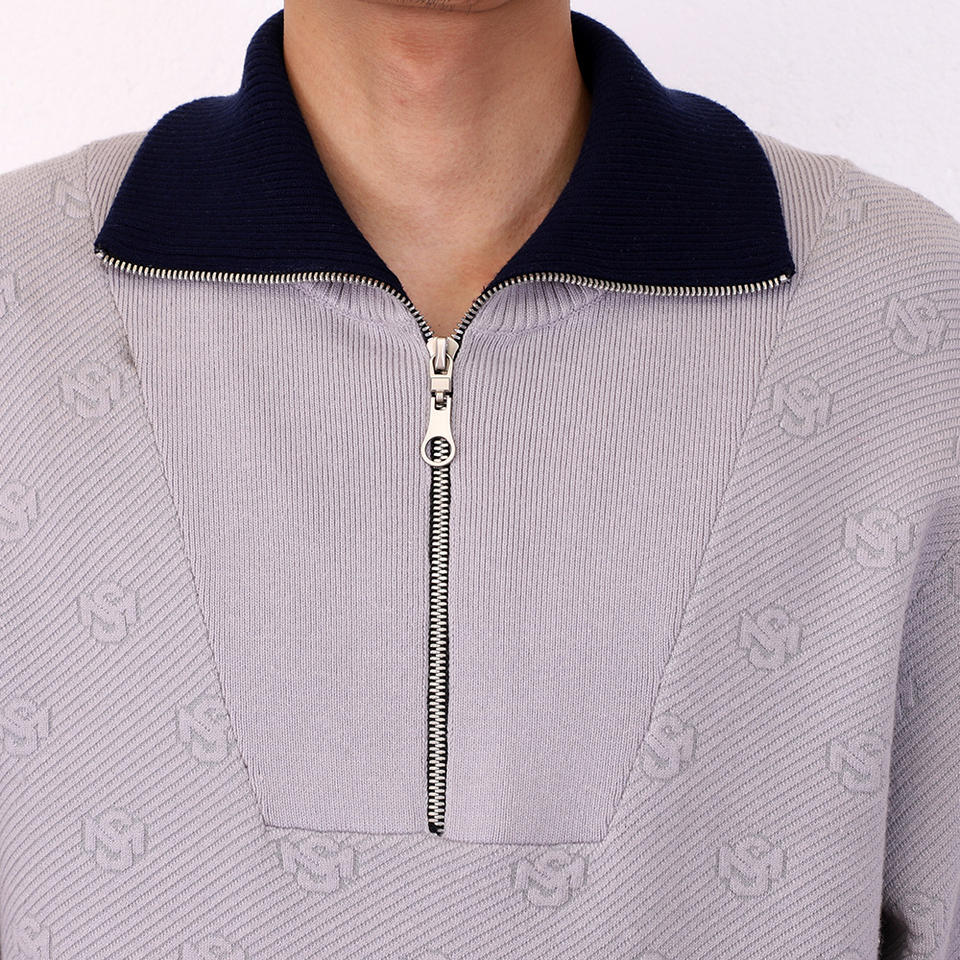 Suéter de Golf Personalizado con Logotipo OEM ODM para Hombre, Cierre de Cremallera 1/4, Diseño de Parches, Tejido Jacquard, Transpirable, para Primavera