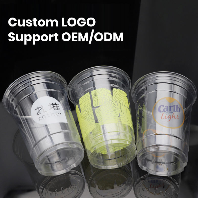Taza de té de burbujas de leche Boba de café helado PET de plástico desechable con logotipo personalizado impreso