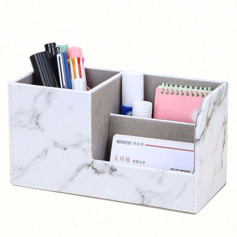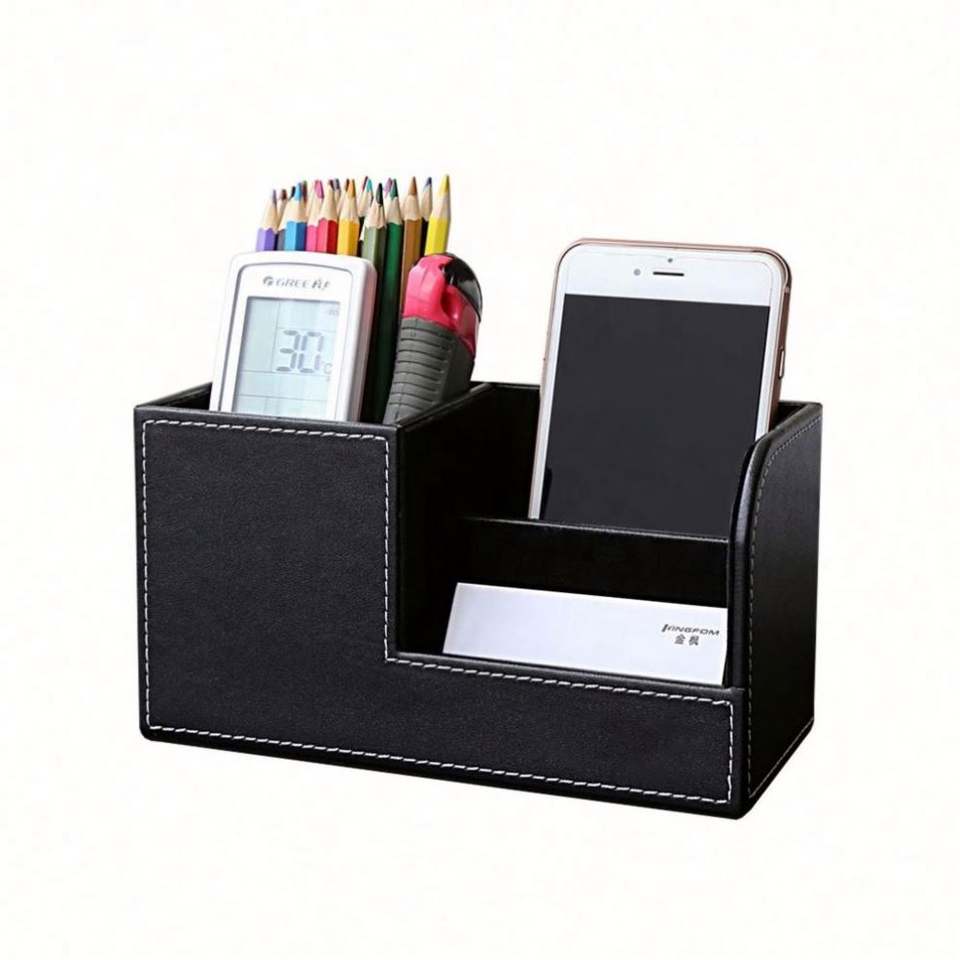 Portalápices Escolar Ecológico con Logotipo Personalizado, Organizador de Escritorio de Cuero PU, Caja de Almacenamiento para Suministros de Oficina, 3 Compartimentos