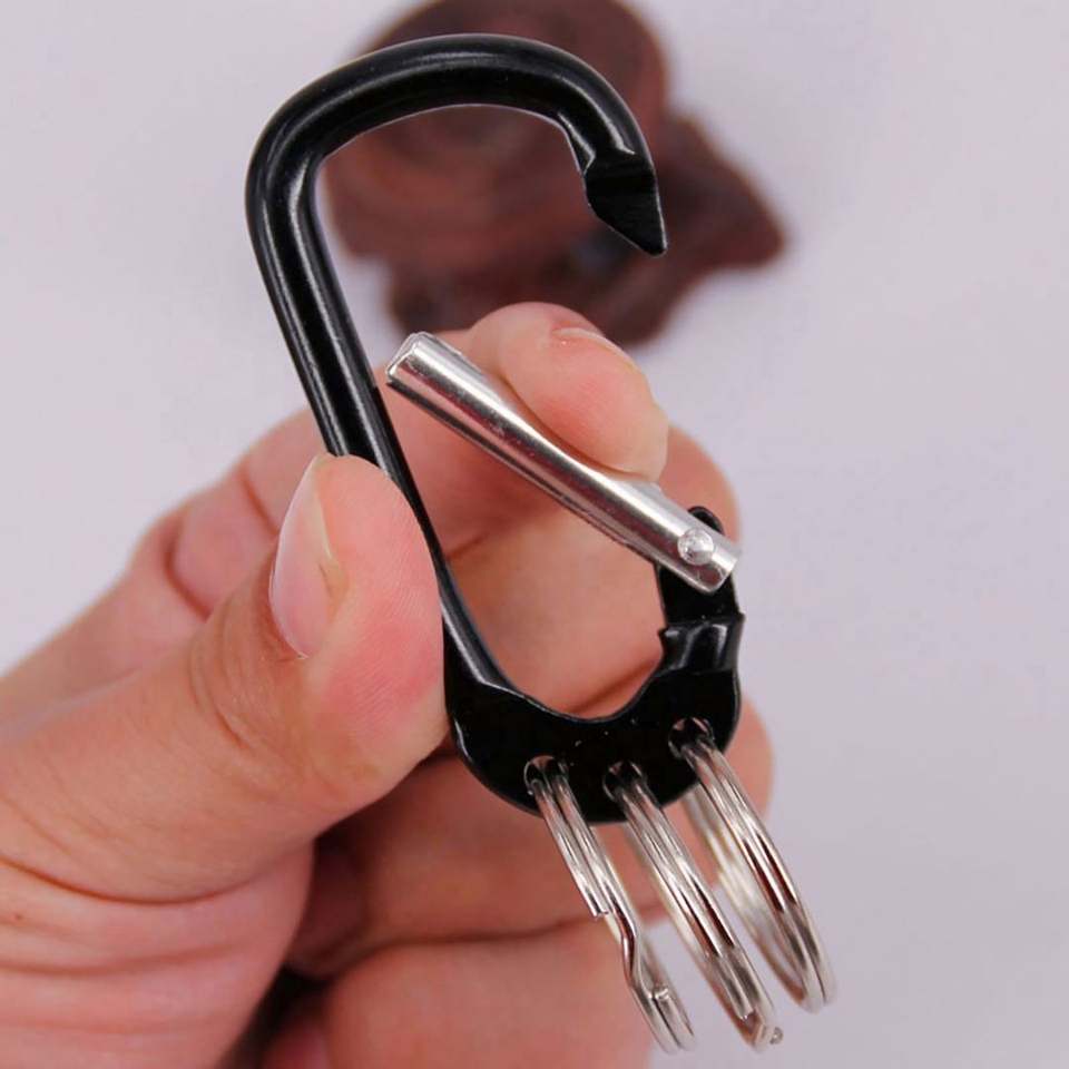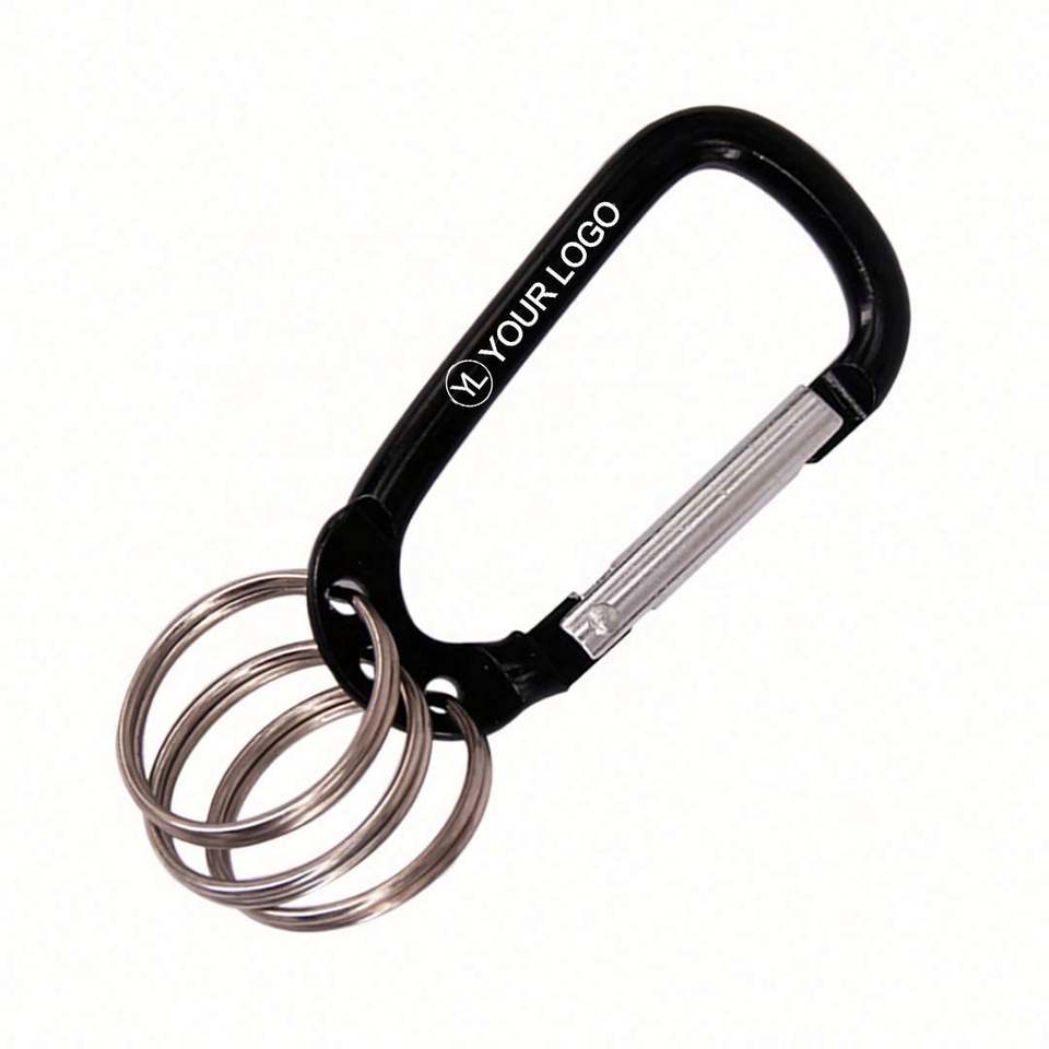 Mosquetón de Seguridad con Logotipo Personalizado, Llavero de Aleación de Aluminio en Forma de D, Clip Multifunción con 3 Anillos para Llaves, Ecológico
