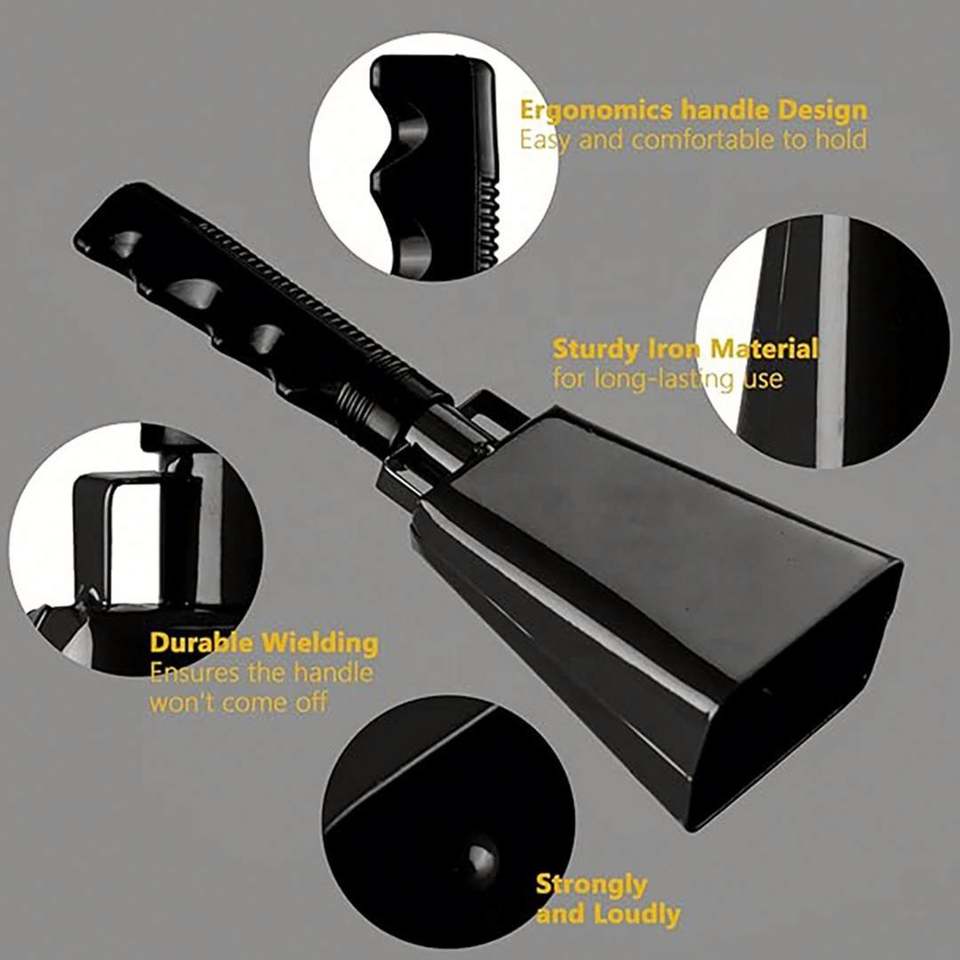 Campanas de Animación Deportivas Rectangulares de 10 Pulgadas de Alta Calidad con Impresión de Logotipo Personalizado en Serigrafía, Campana de Hierro Tipo Vaca
