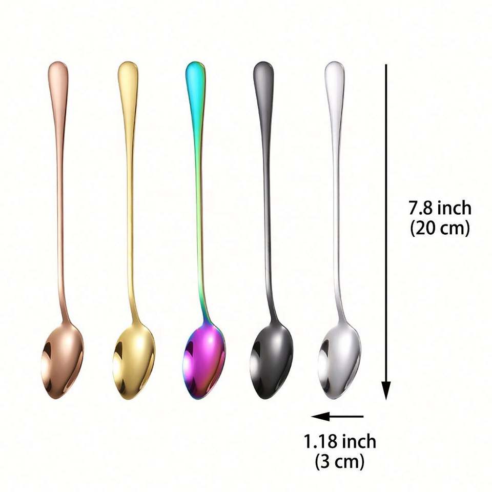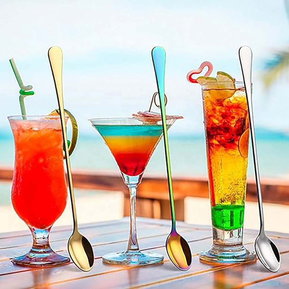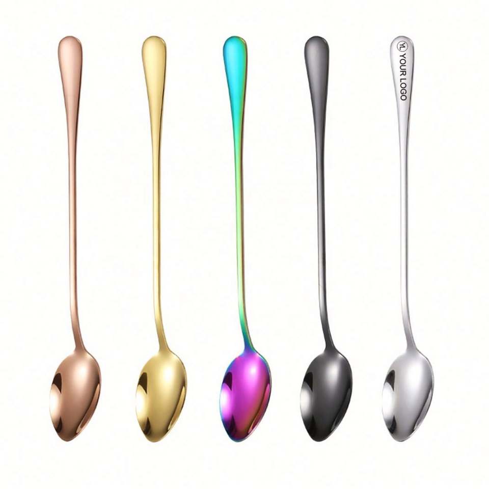 Cucharas de Acero Inoxidable con Logotipo Personalizado para Café, Cócteles, Helados, Cuchara para Té Helado con Mango Largo