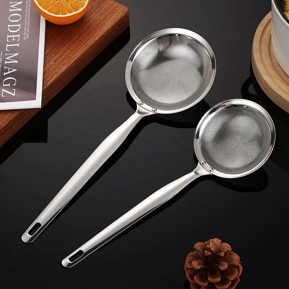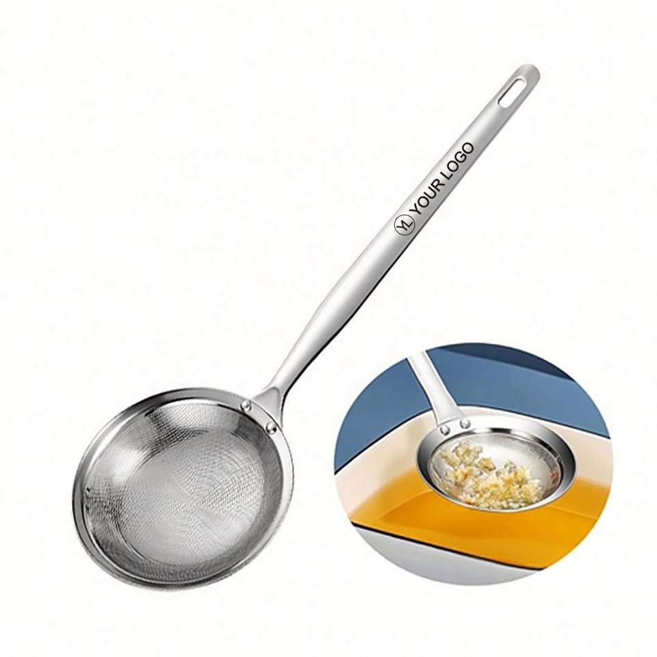 Colador de Alimentos de Malla Fina de Acero Inoxidable con LOGO Personalizado, Cuchara Multifuncional para Desgrasado de Ollas Calientes, Espumadera para Grasa y Espuma, Apto para Lavavajillas