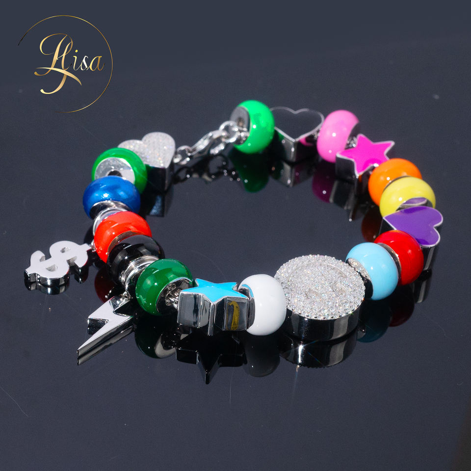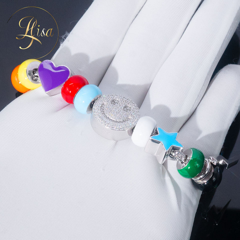 Collar de pulsera de abalorios de diamantes cultivados en laboratorio personalizado, esmalte de gama alta para joyería de cuentas de cara sonriente para mujeres y hombres