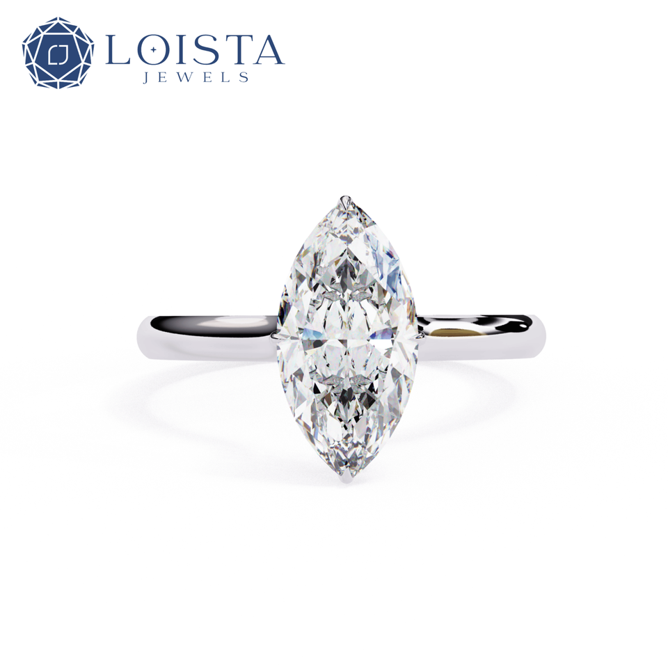 Anillo de Compromiso con Diamante Cultivado en Laboratorio Personalizado, 2 Quilates, Corte Marquesa, Solitario, Oro Blanco/Amarillo/Rosa de 18k/14k/10k, Certificado IGI, para Mujer