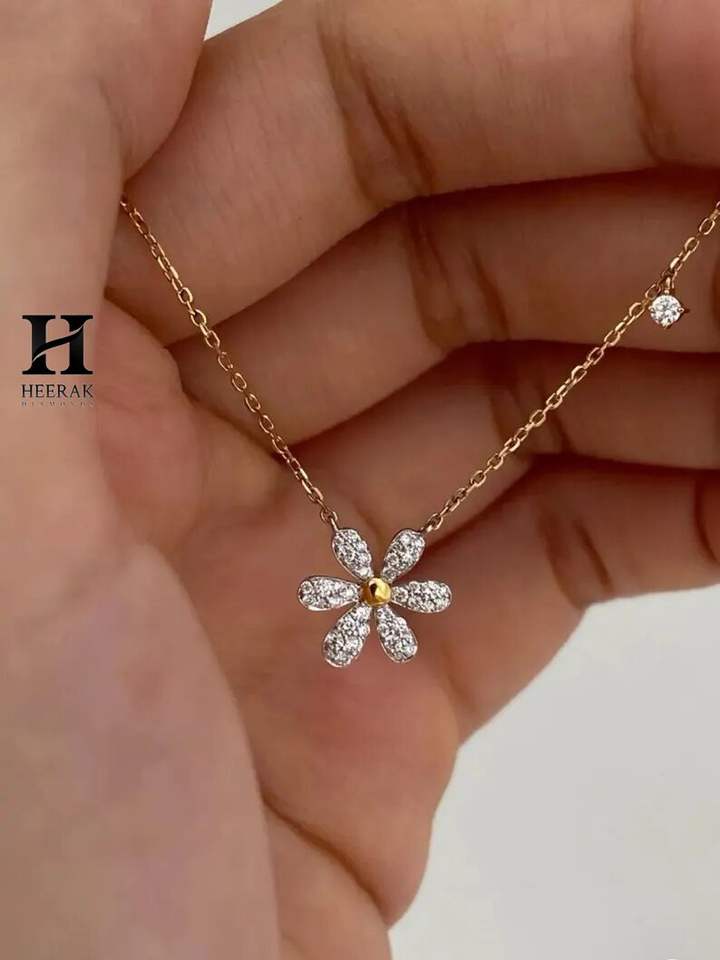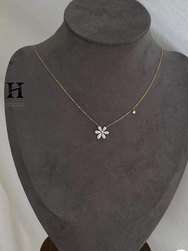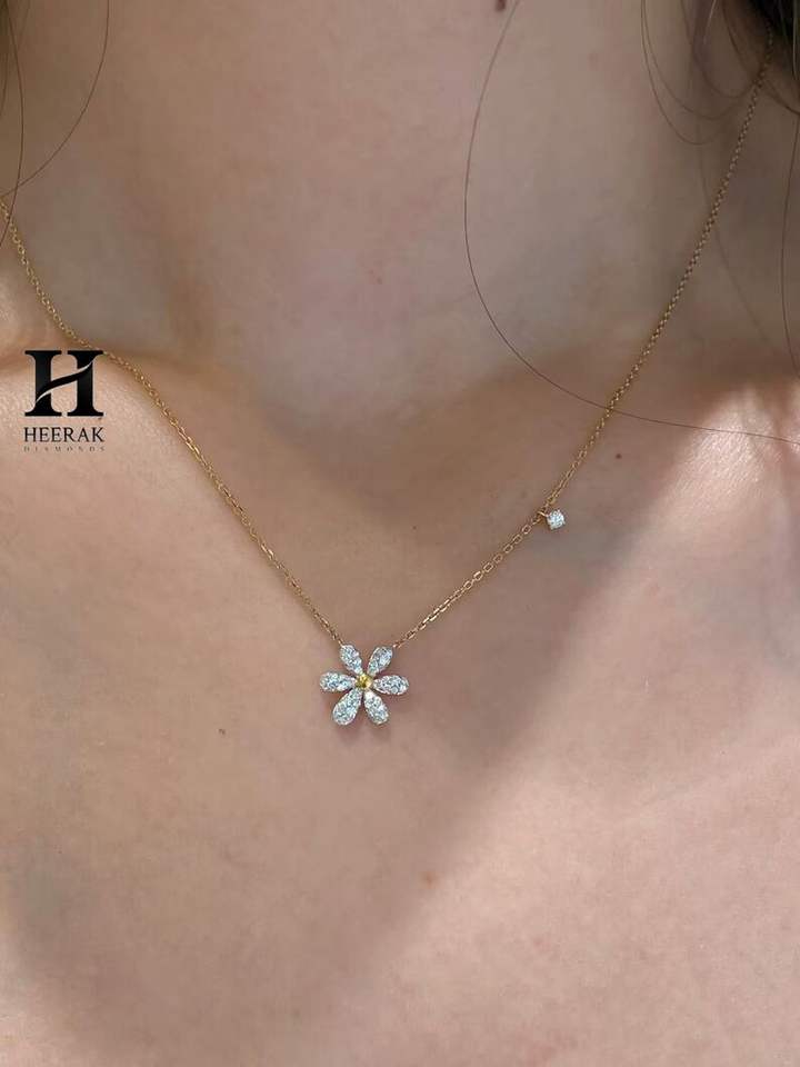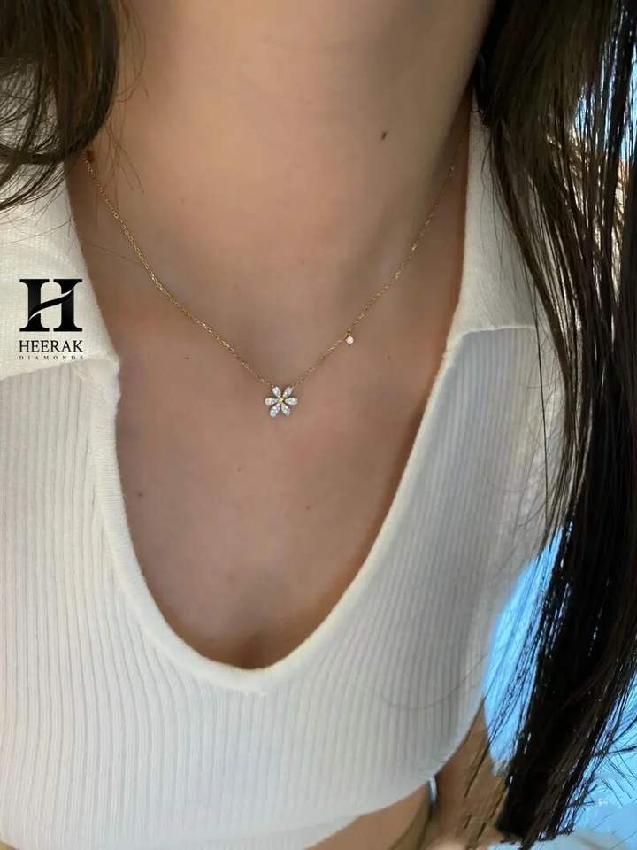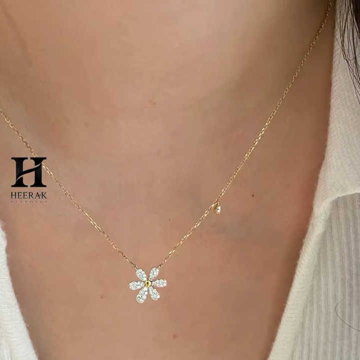 Collar con colgante de flor de diamante cultivado en laboratorio personalizado, gargantilla floral delicada de oro, collar de margarita con diamante certificado VVS, venta al por mayor