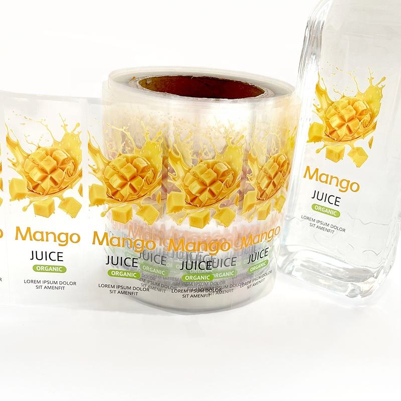 Impresión de etiquetas personalizadas botella de jugo impermeable servicio de impresión de embalaje etiquetas adhesivas para botellas bebida transparente