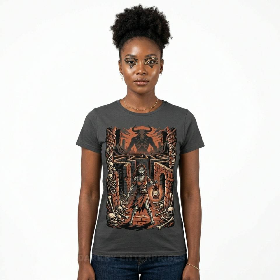 Camiseta Gráfica Personalizada Laberinto Minotauro, Camiseta de Algodón Pesado, Fabricante Mayorista, Top de Streetwear con Estampado Personalizado