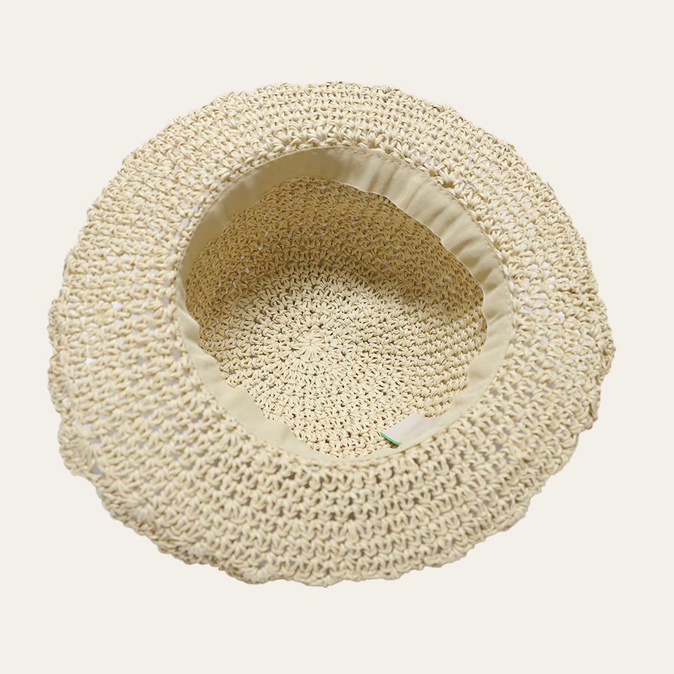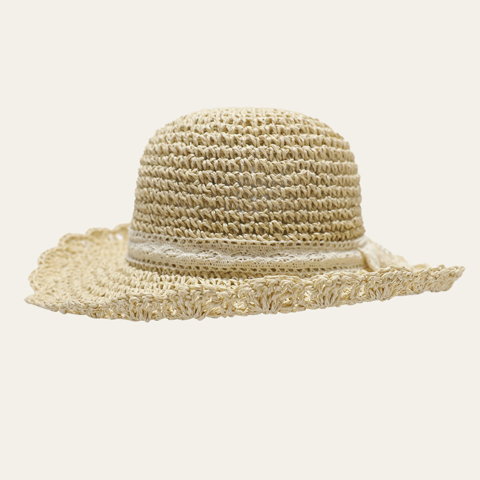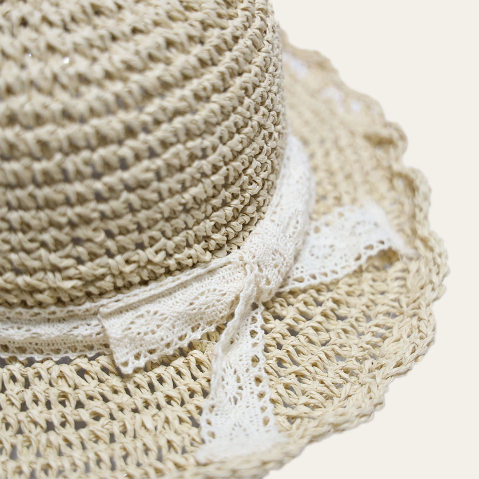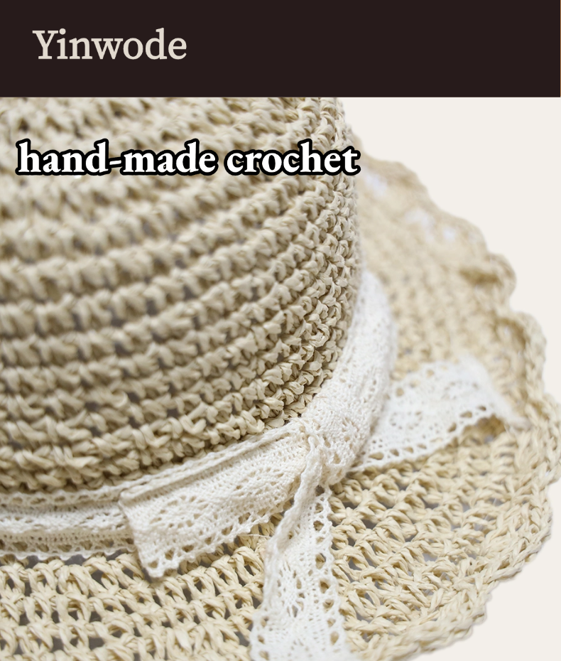 Personalizado encaje arco sol plegable sol mujer verano hecho a mano ganchillo cubo Sombreros De Paja sombrero De paja para mujer niños niñas