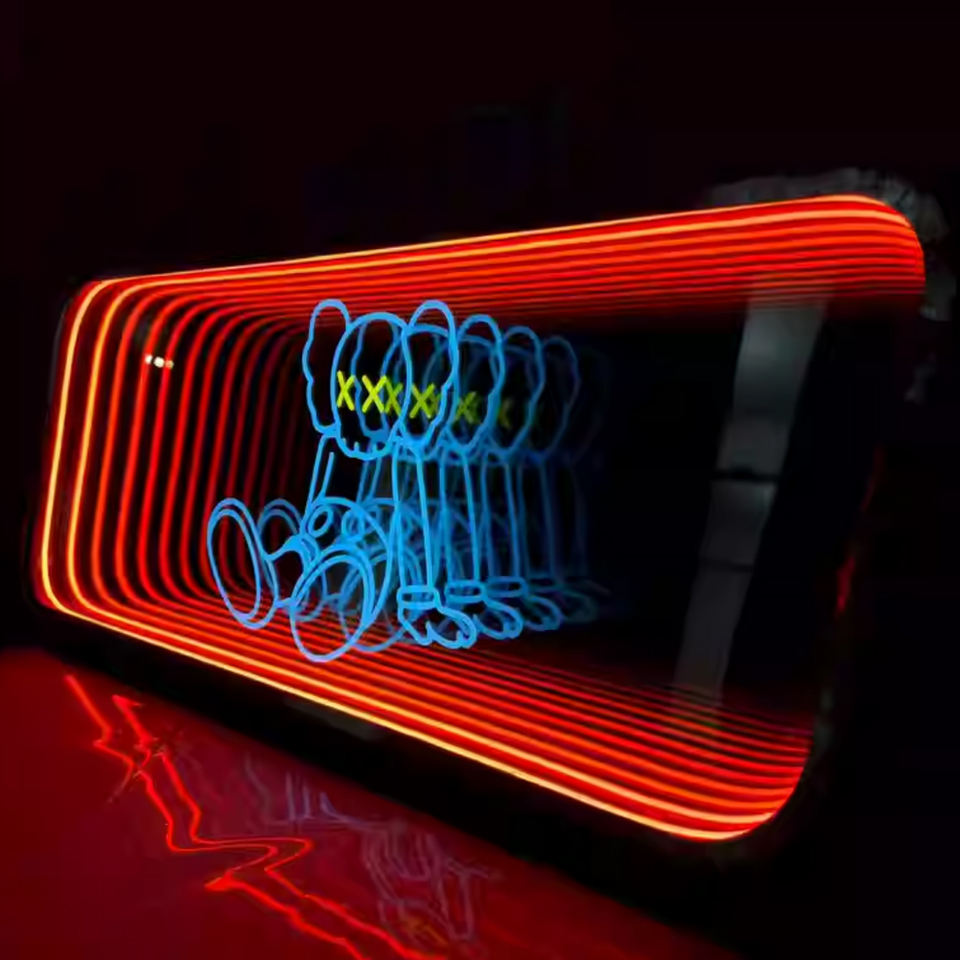 Letrero LED de Neón Personalizado con Logotipo 3D Grande, Espejo Infinito, Astronauta, Patrón Impreso con UV, Verde, Control Remoto, IP65, Vidrio, para Oficinas, Tiendas, Empresas