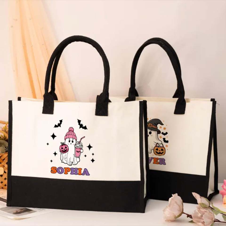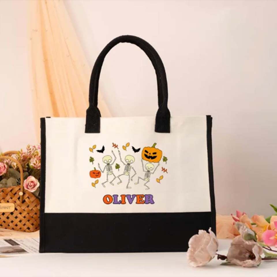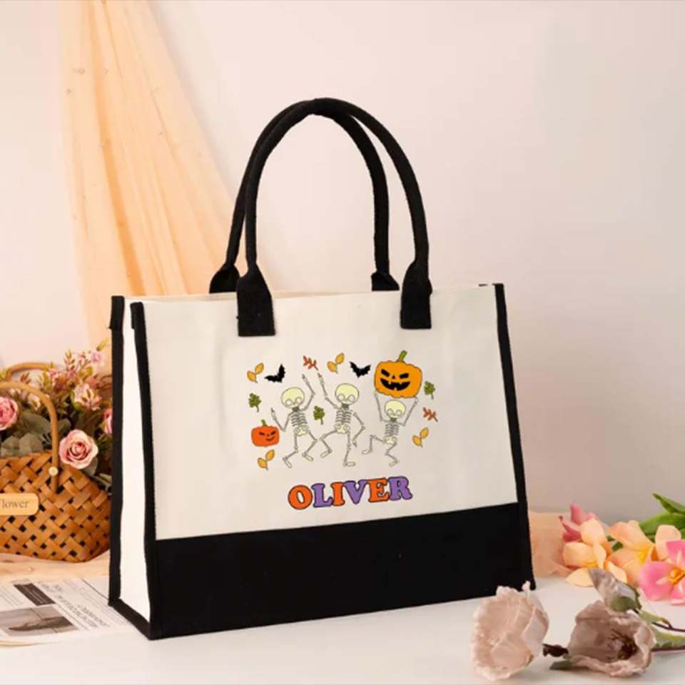 Bolsa de Mano Personalizada de Gran Capacidad, de Lona de Algodón, con Bordado de Halloween, Ecológica, para Viajes de Verano, Vacaciones, Playa, Abierta