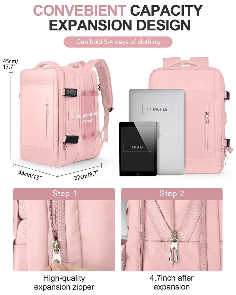 Mochila Inteligente Antirrobo con Carga USB Expandible de Gran Capacidad Personalizada, Mochila de Viaje para Portátil con Respaldo Suave
