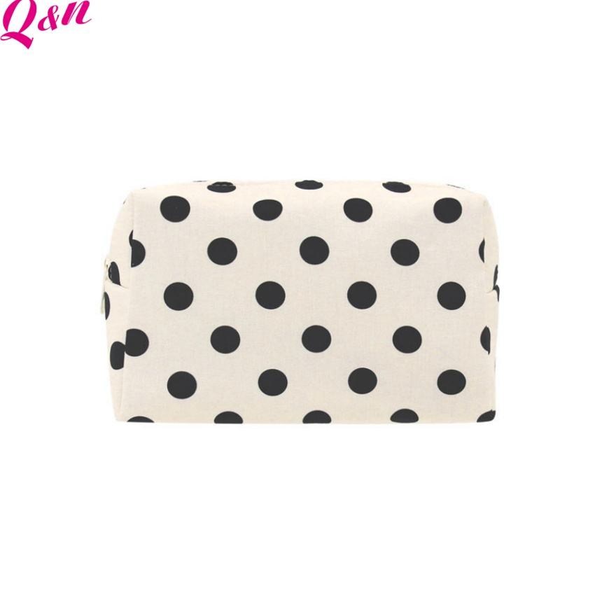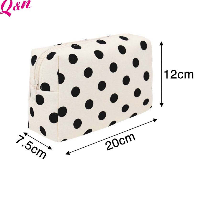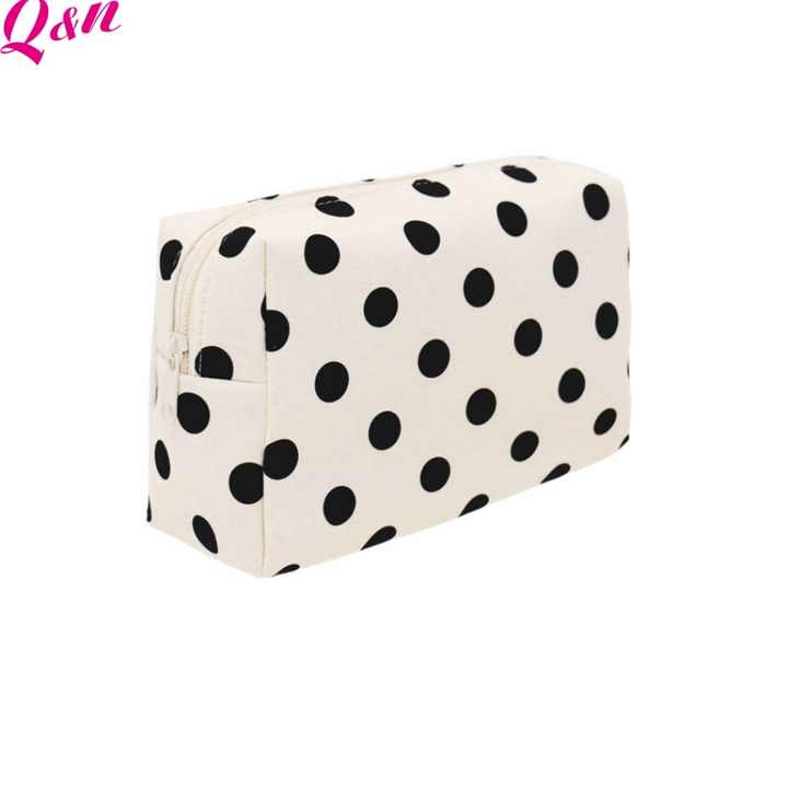 Maquillaje divertido de lunares de gran capacidad personalizado portátil para neceser bolsas de cosméticos de lona suave con cremallera para niñas y mujeres