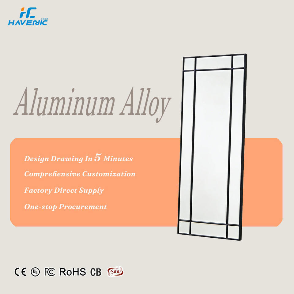 Espejo de Metal Grande con Marco Personalizado, Espejo de Pie o de Pared Estilo Ventana Moderna para Decoración de Hotel