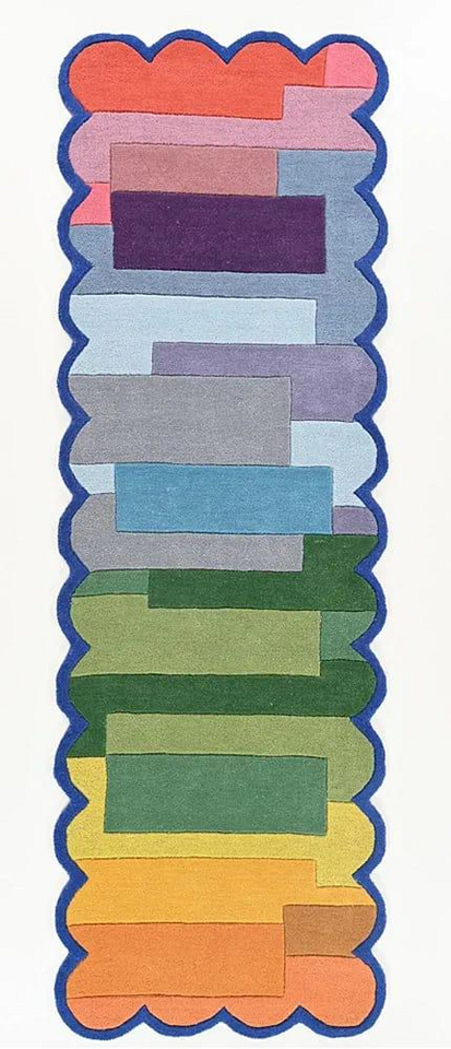 Alfombra de camino de lana con mechones a mano grande personalizada, alfombras inspiradas en festoneado de bloques de colores geométricos modernos hechos a mano para el suelo del hogar