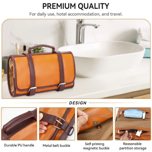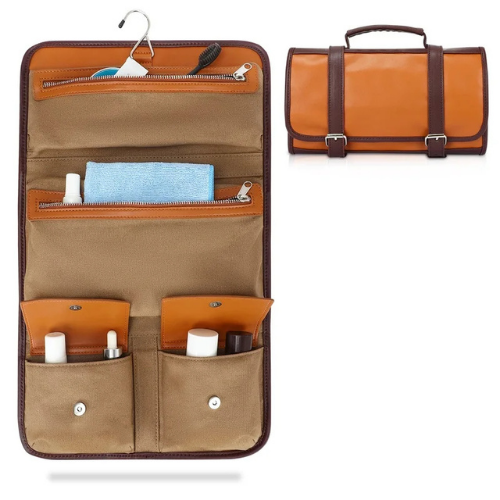 Funda extraíble y gancho para colgar para hombre grande personalizada, neceser de viaje de cuero, Colección organizadora de maquillaje