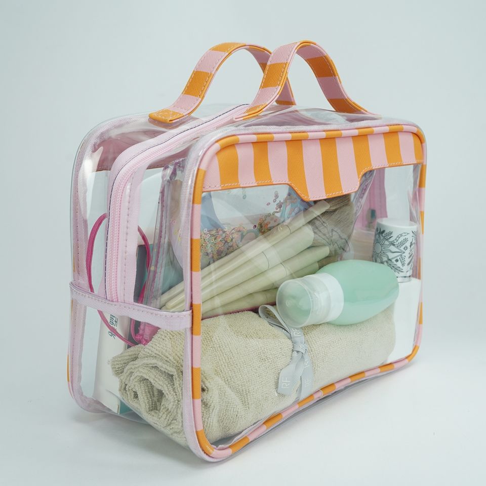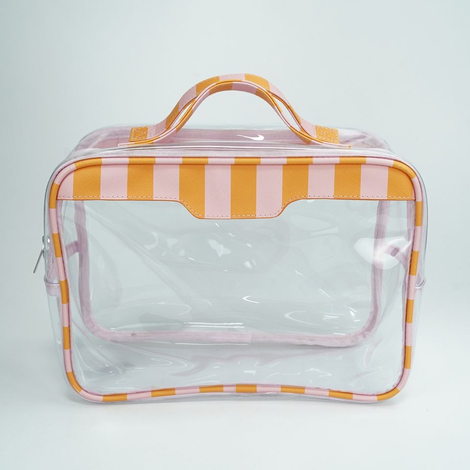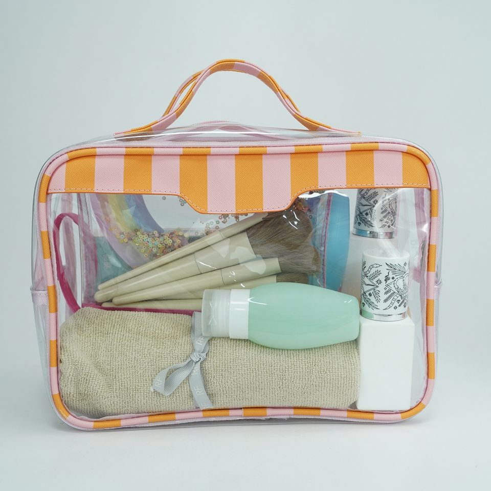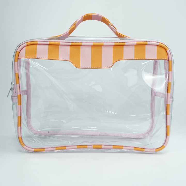 Neceser grande de PVC personalizado para playa, juego de viaje impermeable, cierre de cremallera, neceser de belleza geométrica, bolsa de tocador para llevar todo el maquillaje