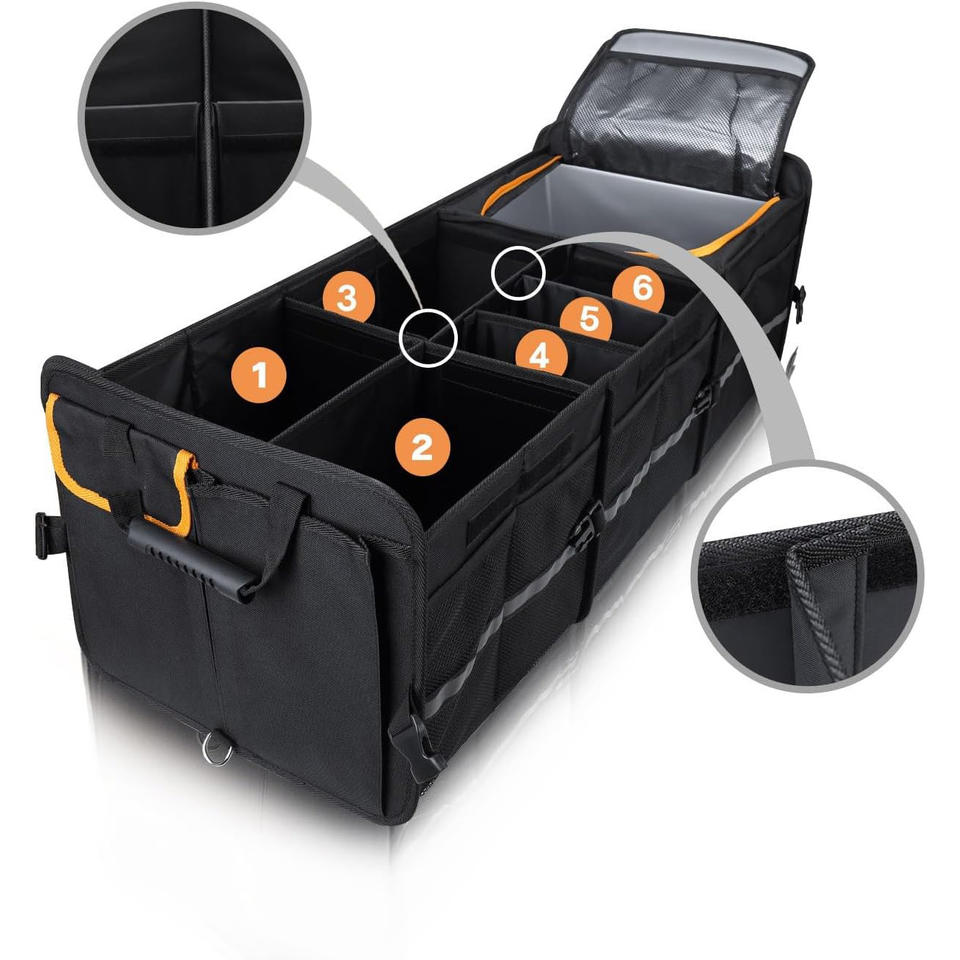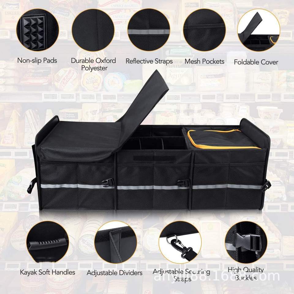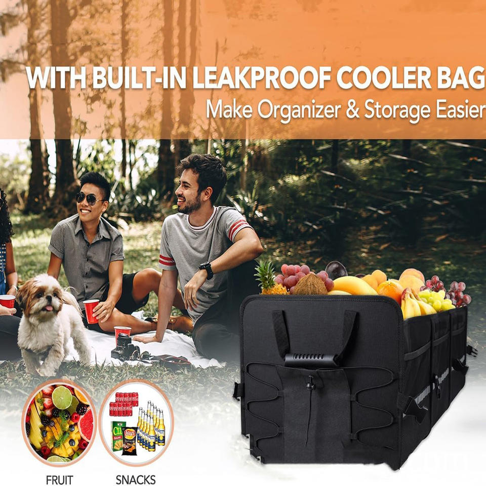 Caja organizadora de almacenamiento plegable portátil grande personalizada para coche, caja organizadora de maletero de coche con bolsa de refrigeración