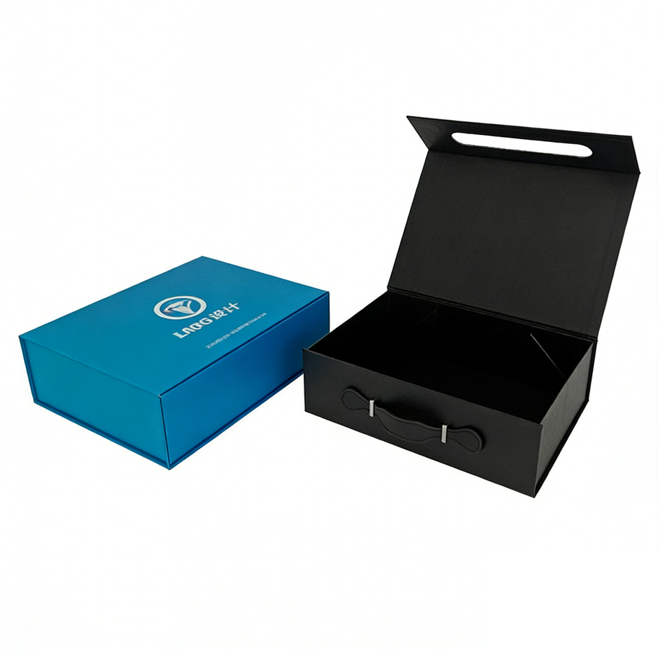 Caja de Regalo Magnética Plegable Rígida Grande Personalizada, Empaque de Cartón Plegable de Lujo Negro con Asa