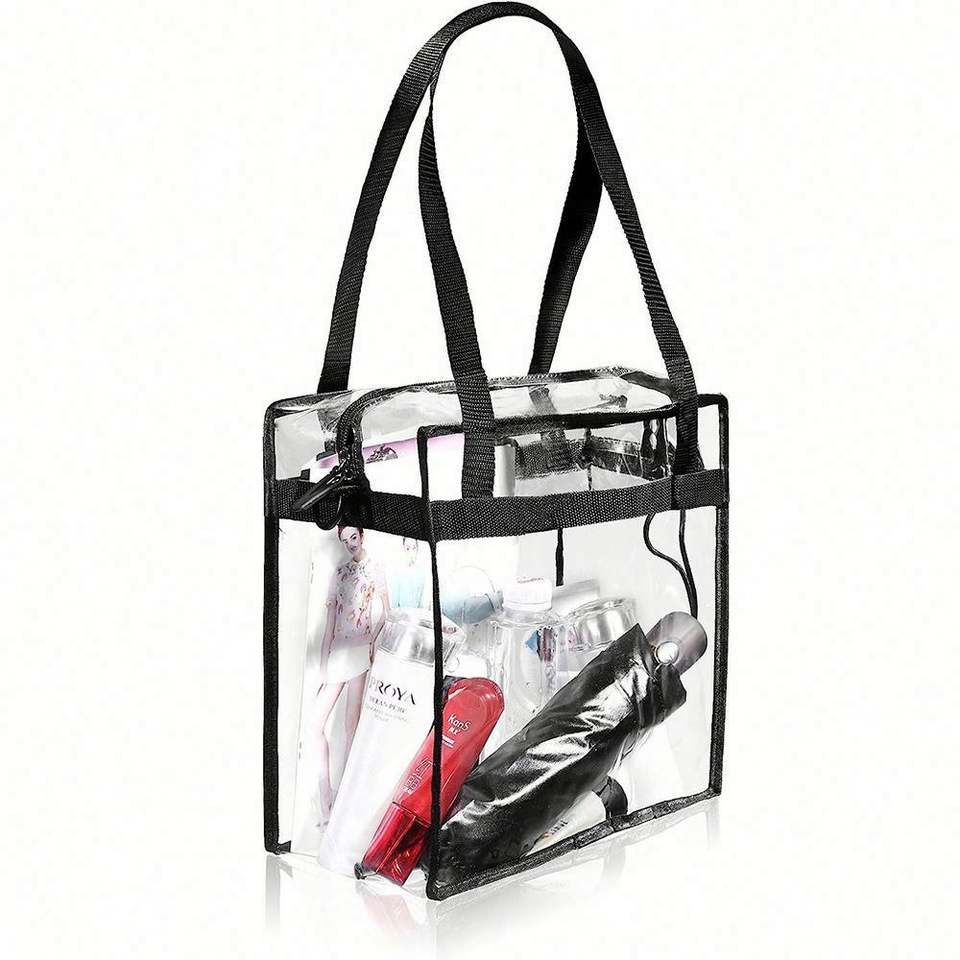 Bolsa de Mano Transparente Grande y Elegante Personalizada, Bolsa de Hombro de PVC Transparente con Impresión de Letras, Bolsa de Playa, Bolsa de Viaje, Bolsa de Compras para Mujer