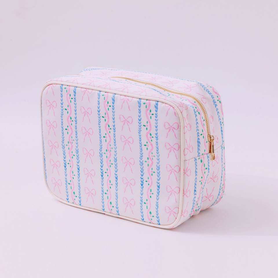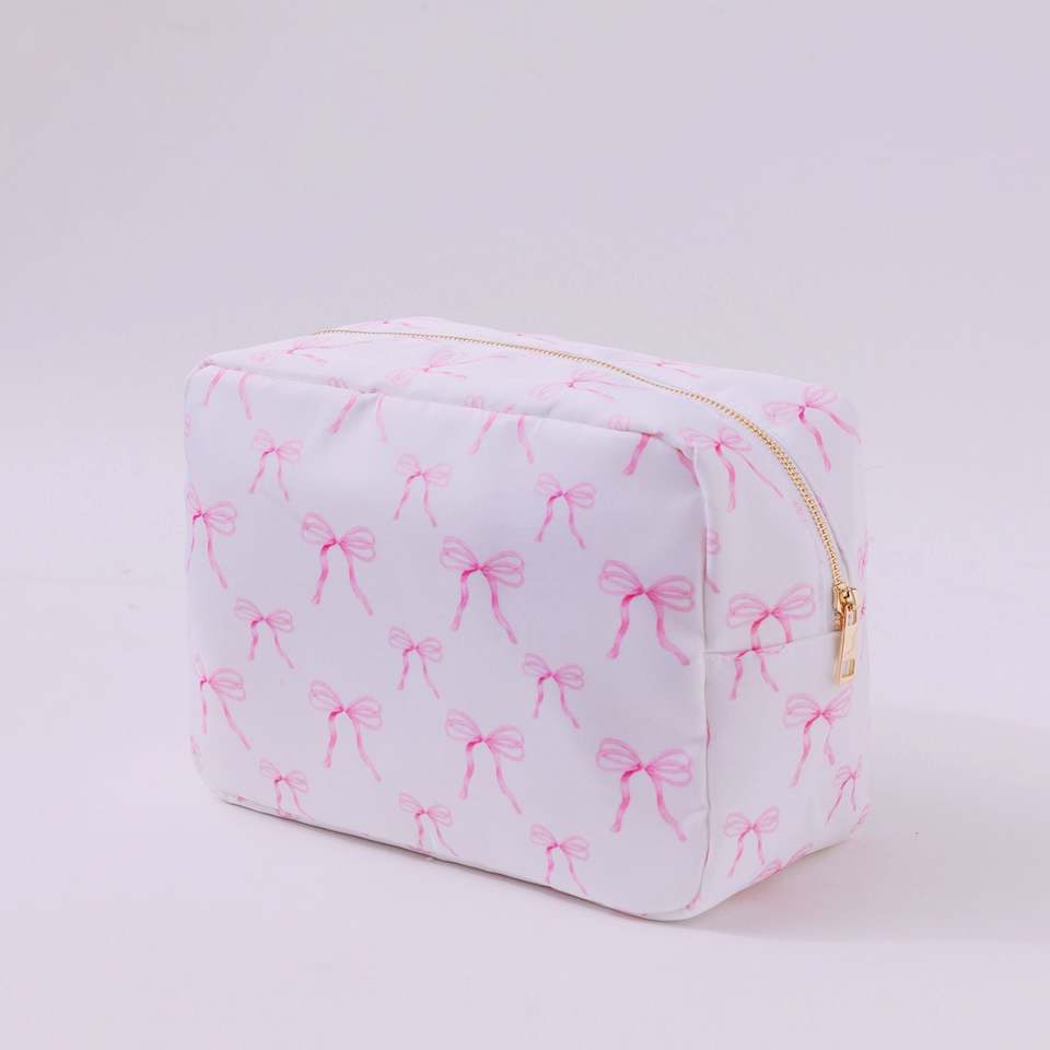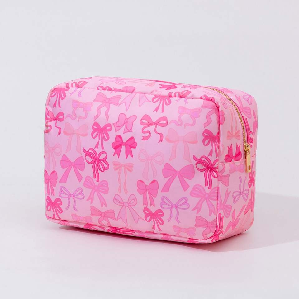 Neceser de Viaje Grande Personalizado con Cierre, Ecológico, con Estampado de Lazo Rosa, Impermeable, de Nailon, para Mujer