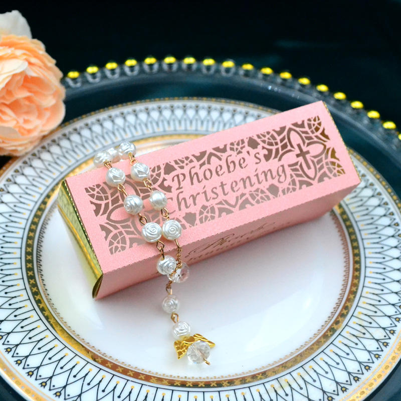 Caja de Recuerdo para Primera Comunión o Bautizo, con Cruz Cortada a Láser, Personalizada con Texto, para Pulseras o Rosarios Pequeños