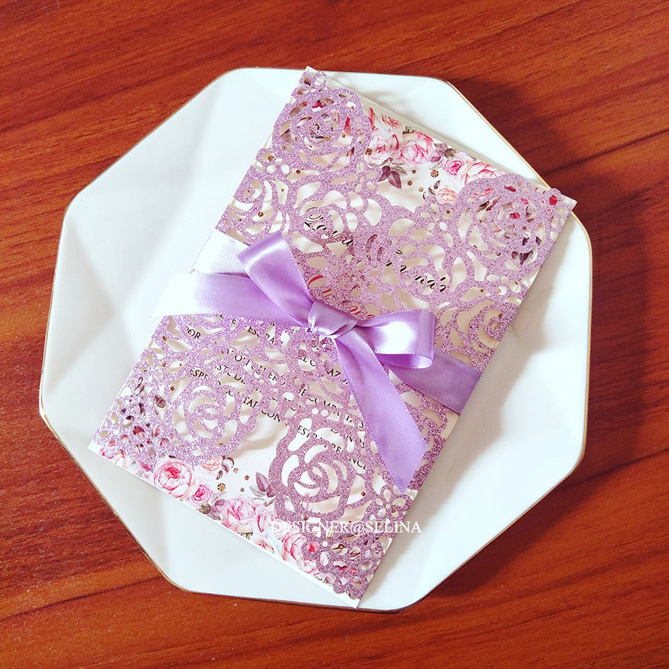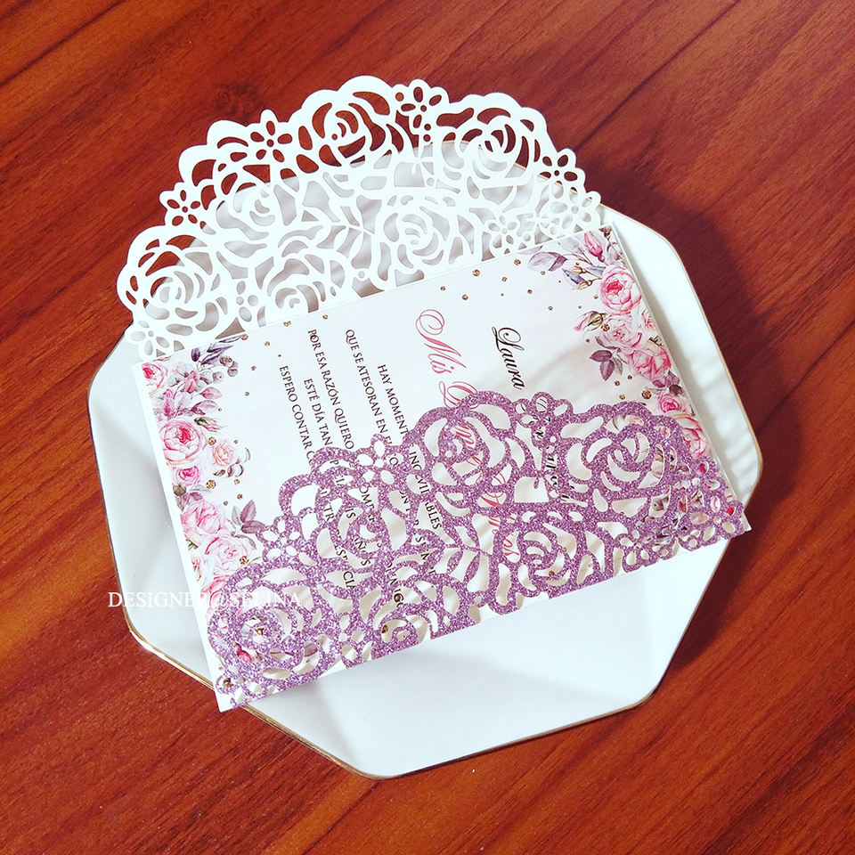 Tarjeta de invitación de boda, papel de corte láser personalizado