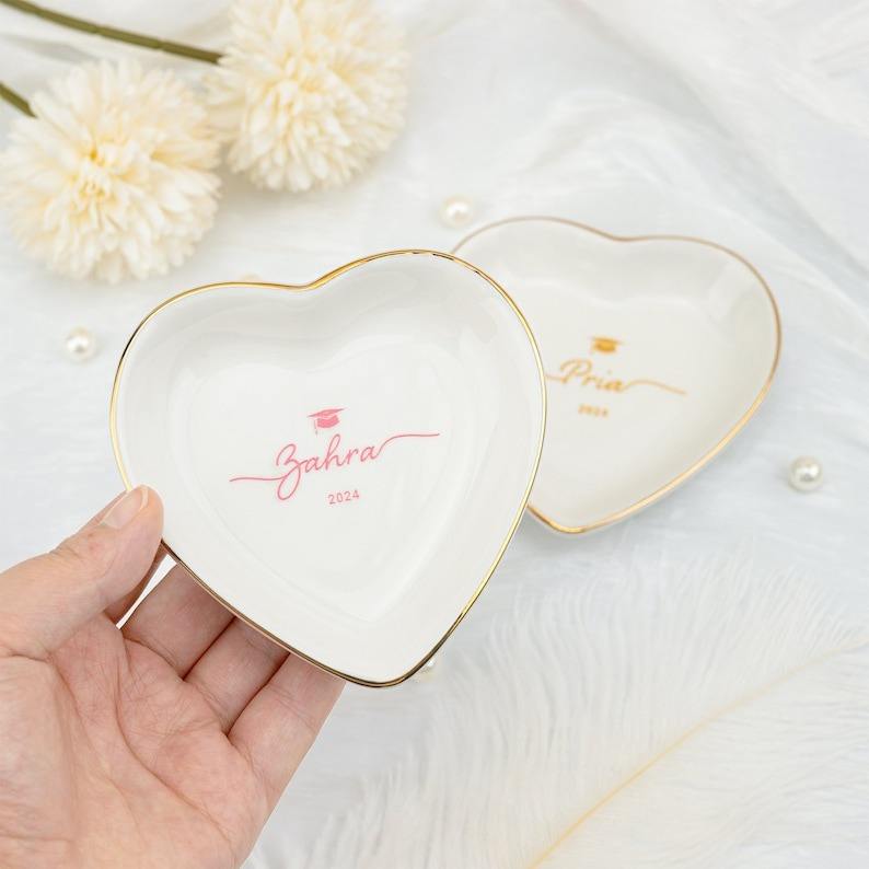 Plato para Anillos de Cerámica Clásico Tallado Personalizado - Bandeja para Joyas con Nombre Monograma - Decoración para el Hogar del Día de la Madre