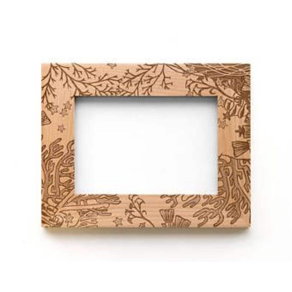 Marco de Fotos de Madera Grabado con Láser Personalizado, Tema de Mar de Coral, Marco de Madera Sólida para Fotos, Decoración del Hogar al por Mayor, Soporte de Escritorio para Retratos