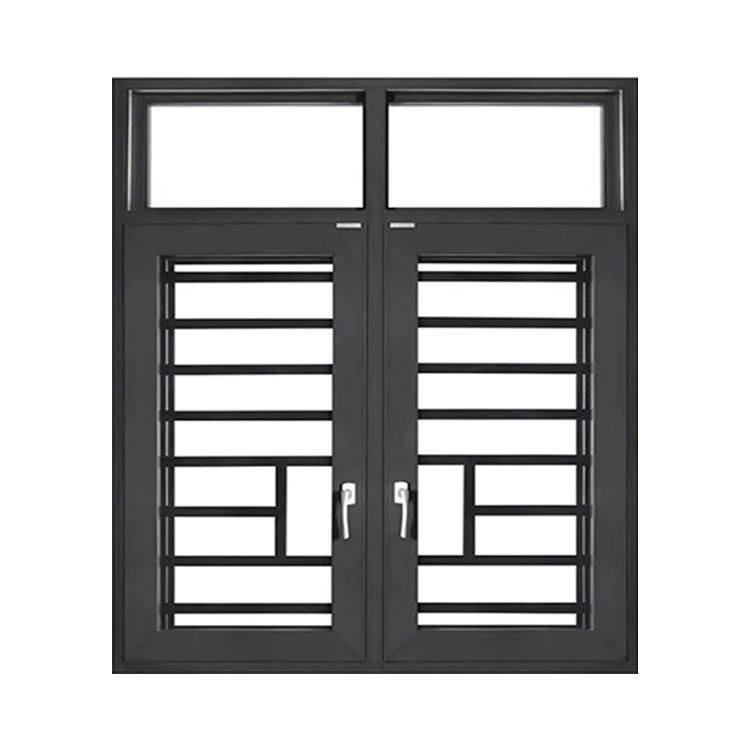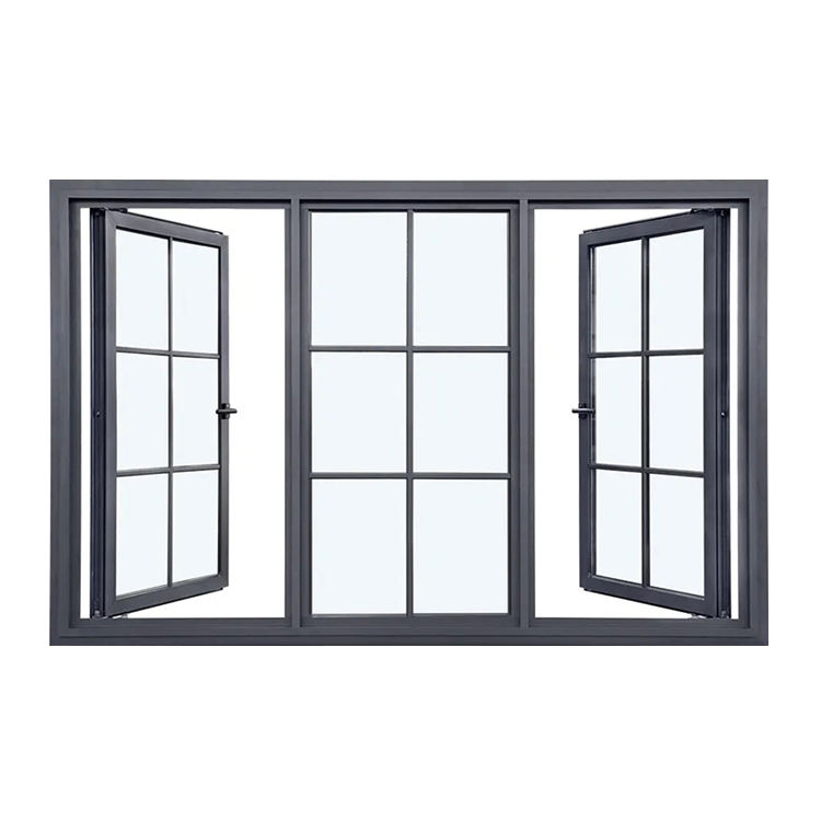 Diseño de ventanas batientes de perfil de aluminio personalizado, marco de aleación de aluminio negro moderno, fijación de vidrio templado y ventana abatible