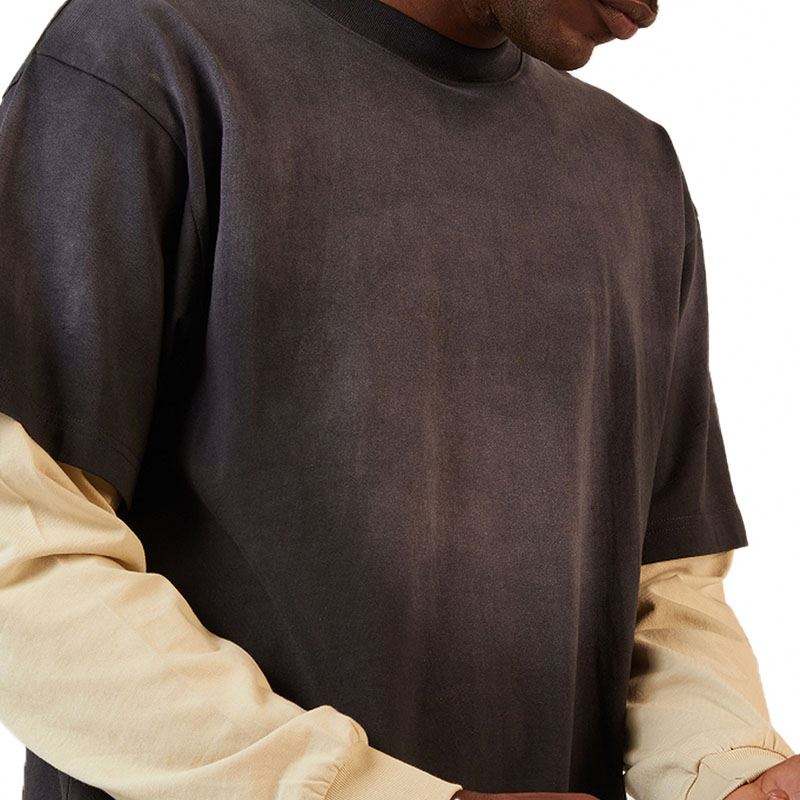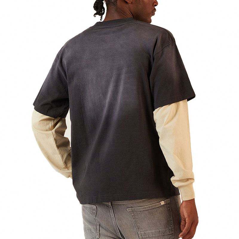 Camiseta de Manga Larga de Doble Capa Personalizada, Estilo Vintage, Holgada, para Hombre, 100% Algodón Tejido Lavado