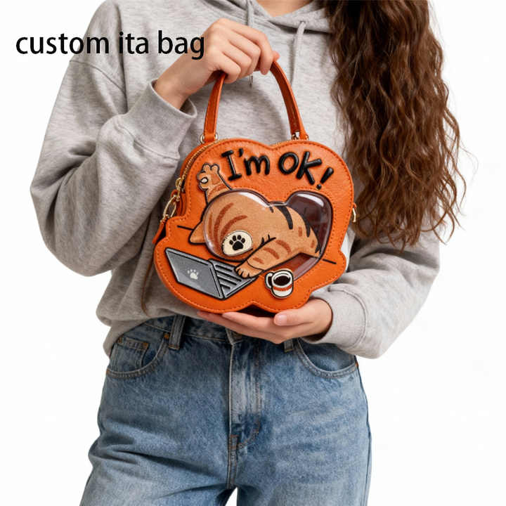 Bolso Ita Personalizado con Forma de Gato Perezoso y Diseño 'I'm OK', Bolso Bandolera con Asa y Correa de Cadena para Fanáticos del Anime