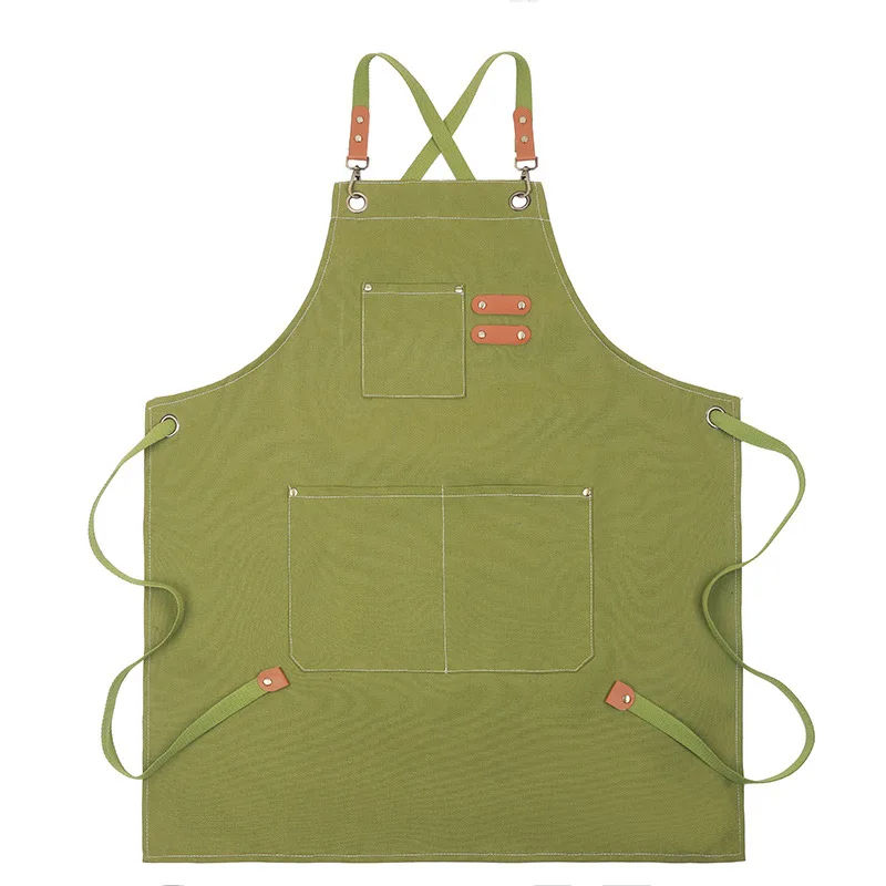 Delantal de peluquería personalizado con correas cruzadas de cuero