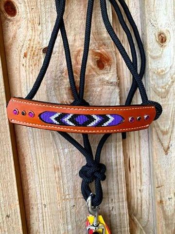 Conjunto de Cabezada y Pechera de Cuero Personalizado con Diseño de Plumas, Riendas y Cabestro Hechos a Mano para Montar a Caballo
