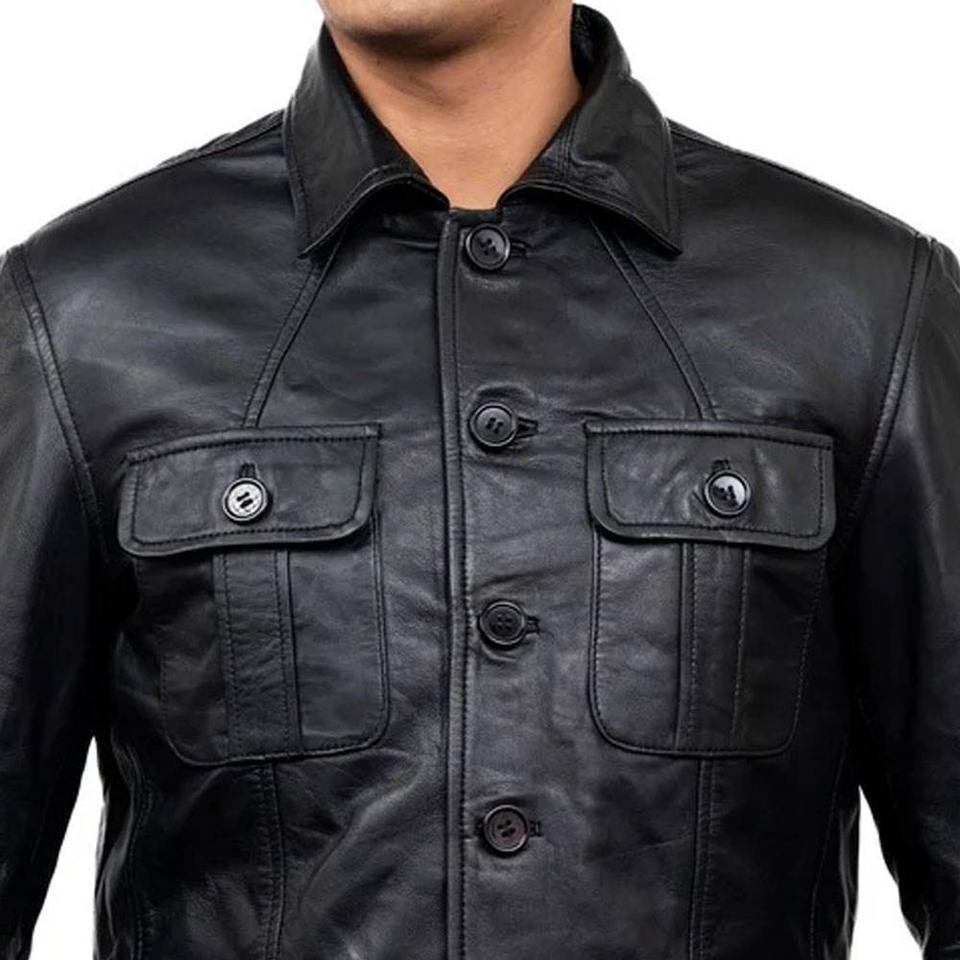 Chaqueta de Cuero y Lona de Piel de Oveja Personalizada para Hombre, Cierre de Cremallera, Cuello Alto, Estilo Urbano, Diseño Personalizable, Invierno