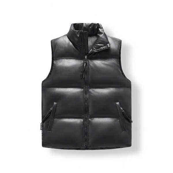 Chaqueta / Chaleco sin mangas de cuero genuino para hombre