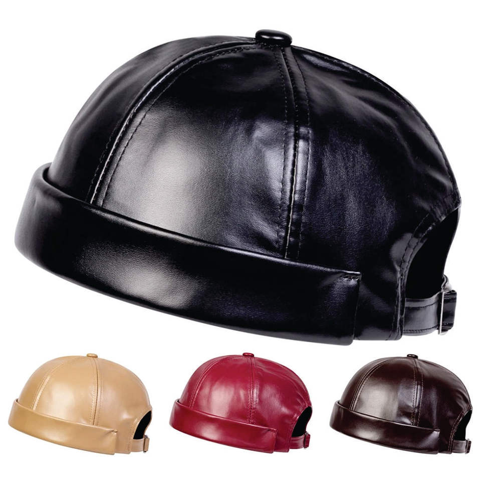Gorro de Cuero Personalizado, Gorro de Algodón de Color Sólido, Gorro sin Visera, Gorro de Propietario, Estilo Retro, Gorra de Béisbol sin Visera