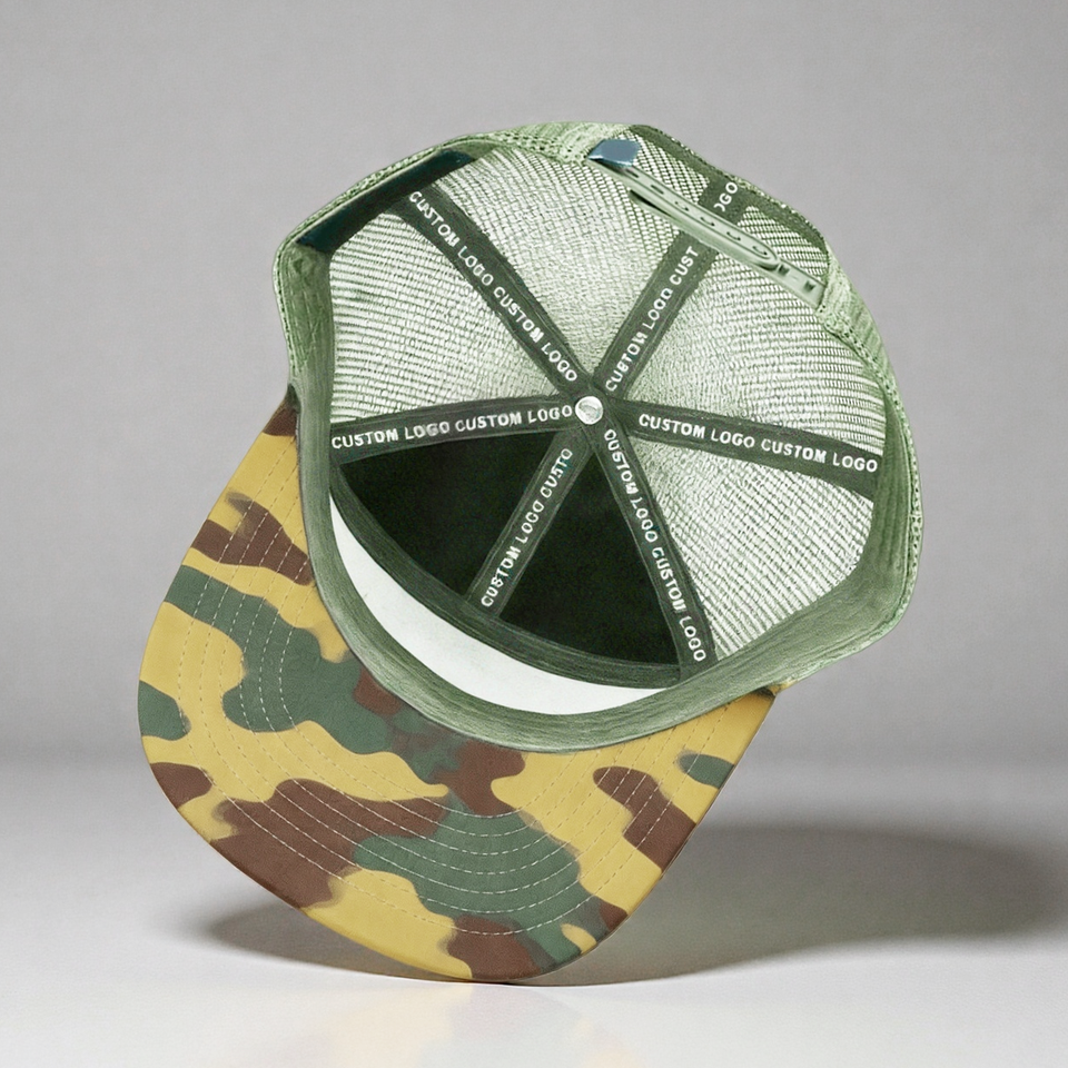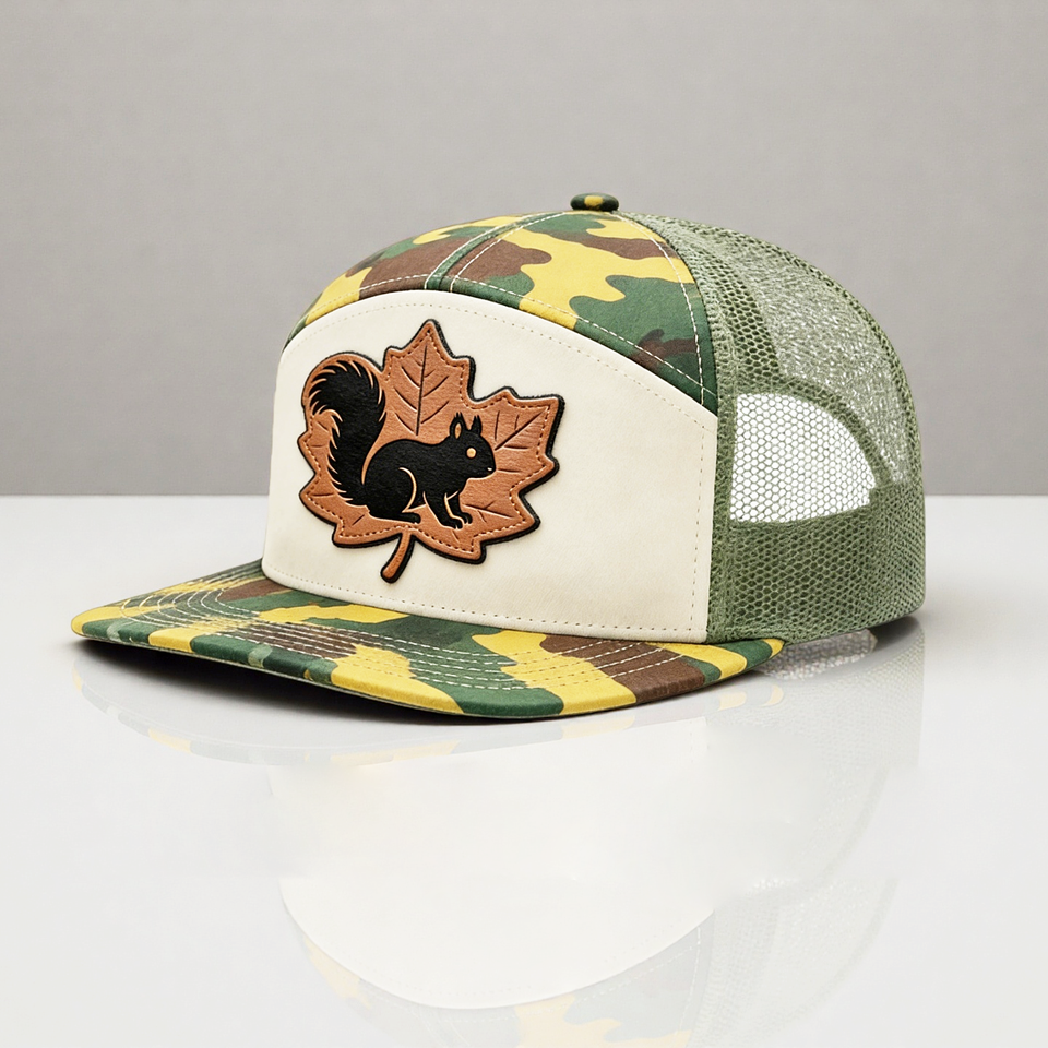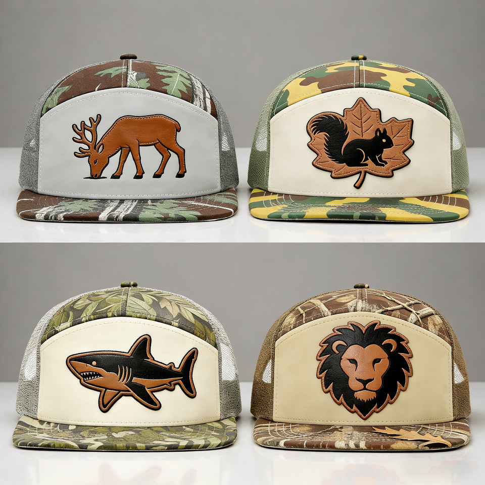 Gorra de Béisbol Deportiva Ajustable con Parche de Cuero Personalizado y Logotipo Bordado, Gorra Trucker de Camuflaje de 7 Paneles de Alta Calidad 168