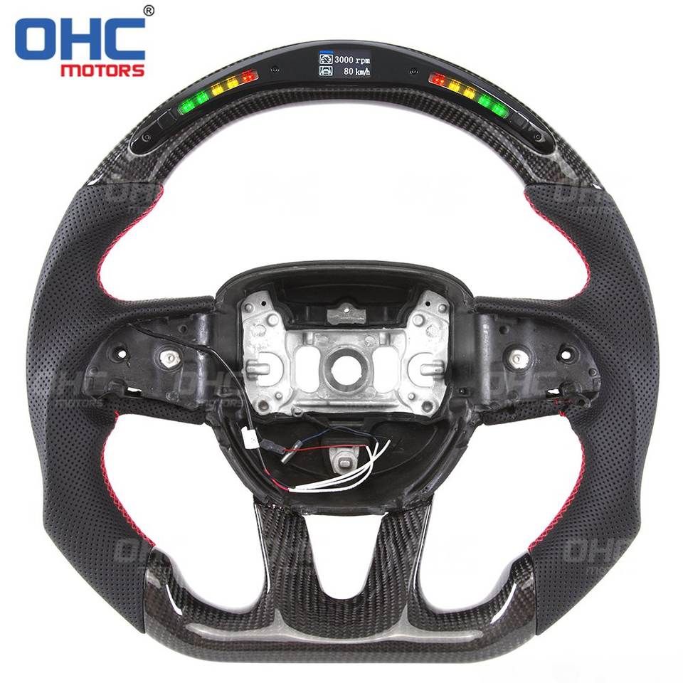 Volante personalizado Led Rpm apto para 2015 Dodge Challenger Charger Srt 2012 coche de carreras volante de fibra de carbono Real