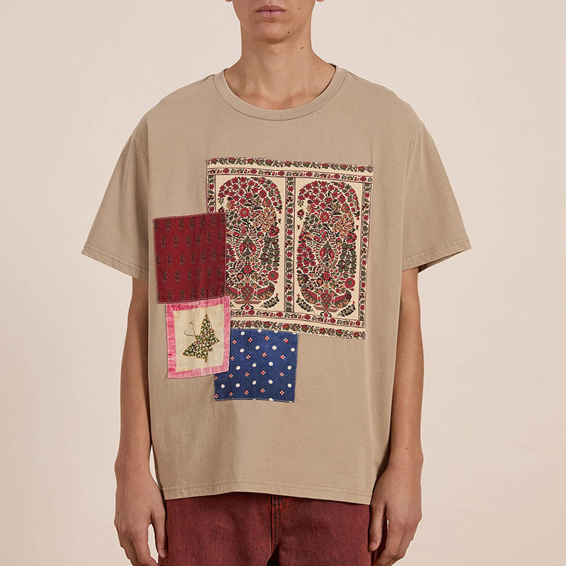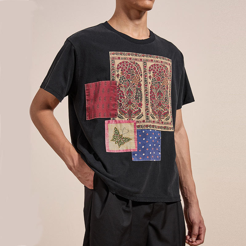 Camiseta de ocio personalizada PATCHWORK para hombre, marca Lucky, manga corta, cuello redondo, ajustada, musculosa, 100% algodón, uso diario, ajuste holgado
