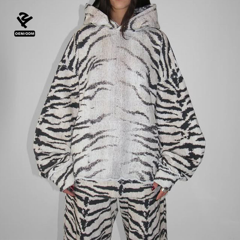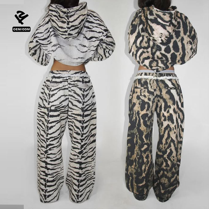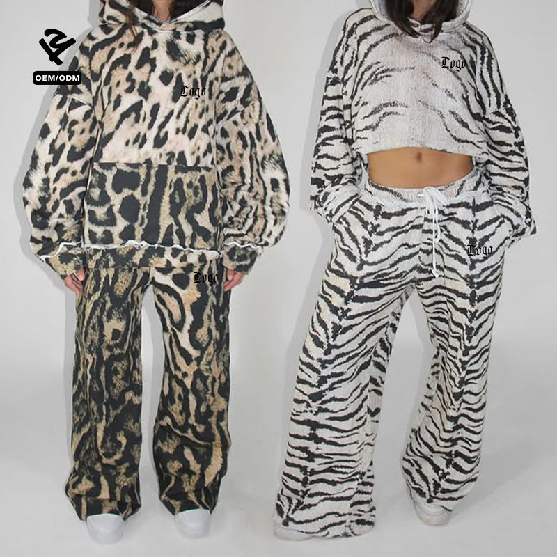 Conjunto Deportivo Personalizado con Estampado de Leopardo y Tigre, Sudadera con Capucha Extra Grande, Pantalones Anchos, Ropa Deportiva para Mujer, Estilo Urbano