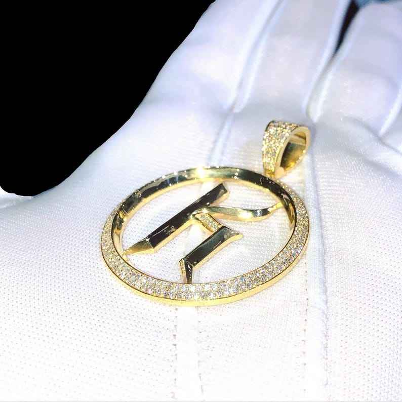 Colgante de Moissanita con Letra K Personalizada en Círculo, Chapado en Oro, Estilo Hip Hop, Plata de Ley 925, Joyería Fina, Colgantes y Dijes