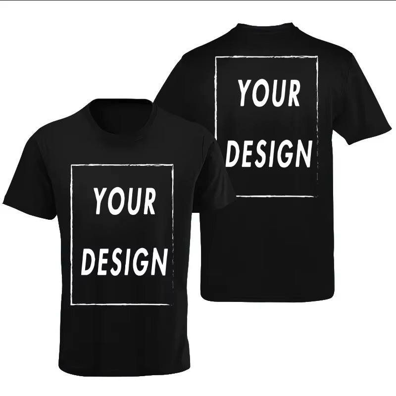 Camiseta tejida con estampado de letras personalizado con estampado frontal, añade texto o foto de tu logotipo | Camisetas 100% algodón personalizadas para hombre