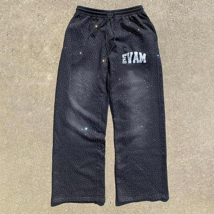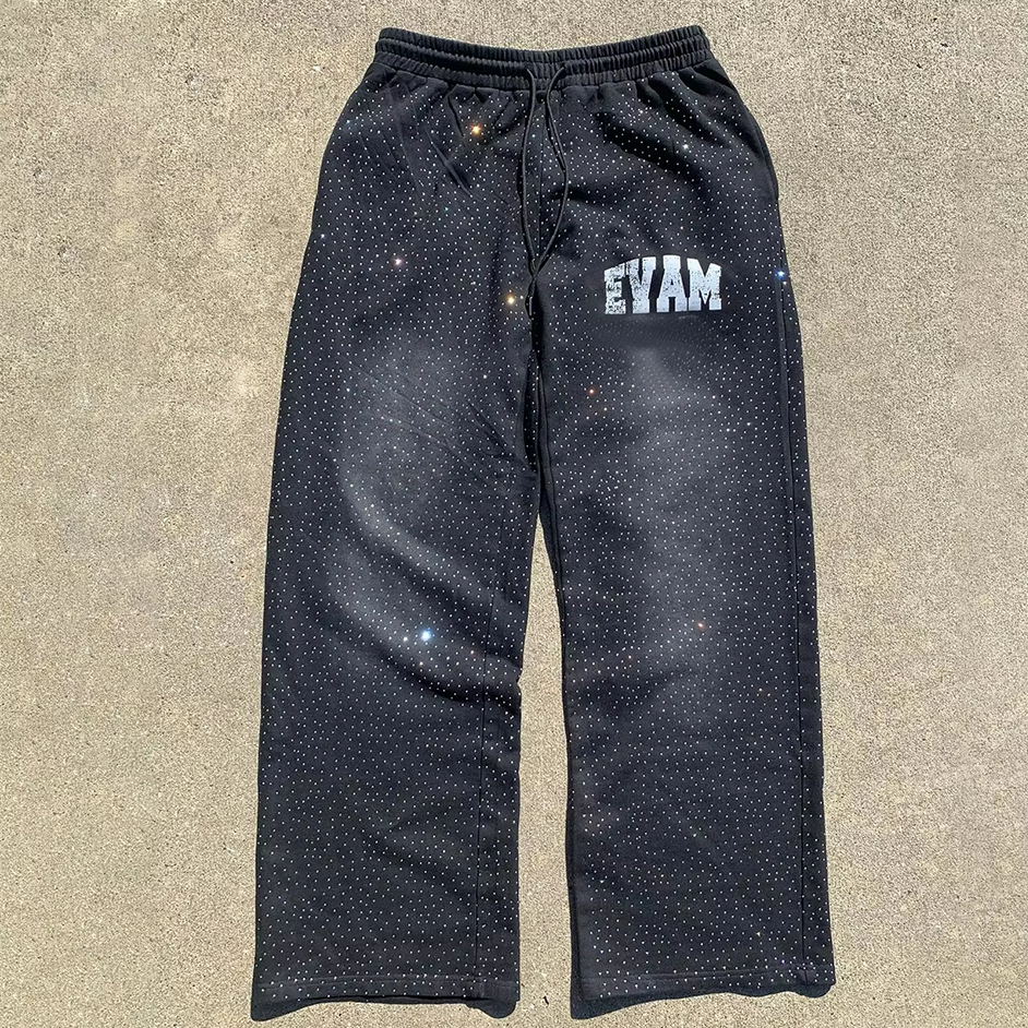 Pantalones de chándal para correr para hombre, de lona bordada con estampado de letras personalizado, transpirables, ecológicos, de ajuste regular, desteñidos y desgastados