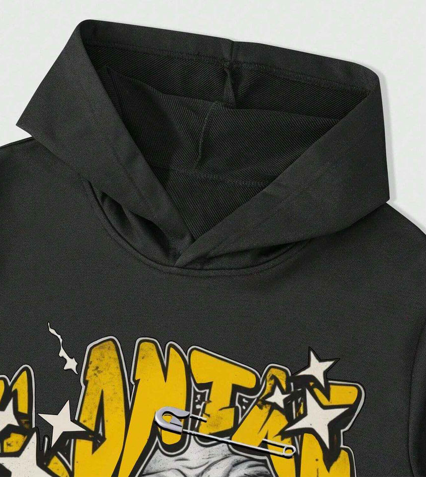 Chándal con estampado personalizado de letras y figuras para hombre, Sudadera con capucha y estampado DTG, pantalones acampanados, conjunto informal de 2 piezas
