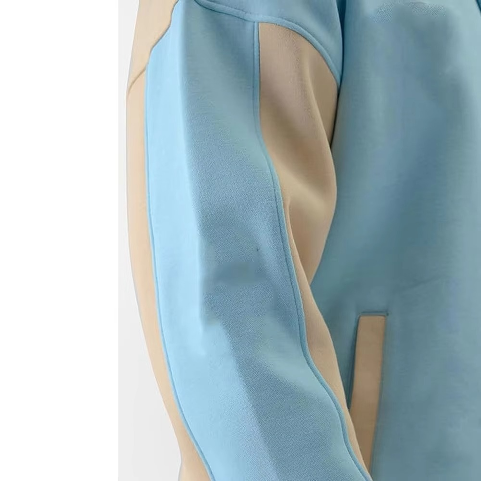Chaqueta Varsity Personalizada Azul Claro con Bordado, Relleno de Algodón, Estilo Universitario Unisex, Ropa Deportiva de Moda, Suministro al por Mayor