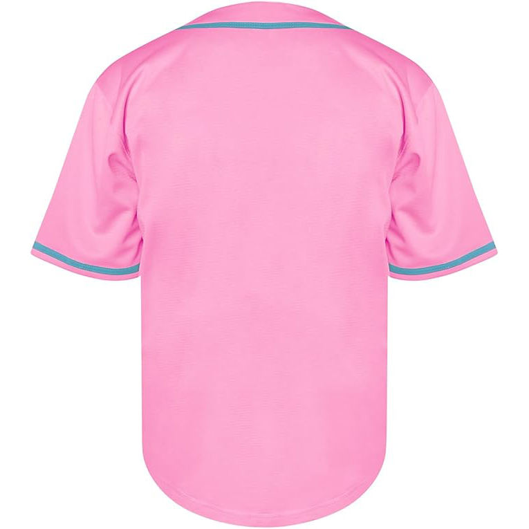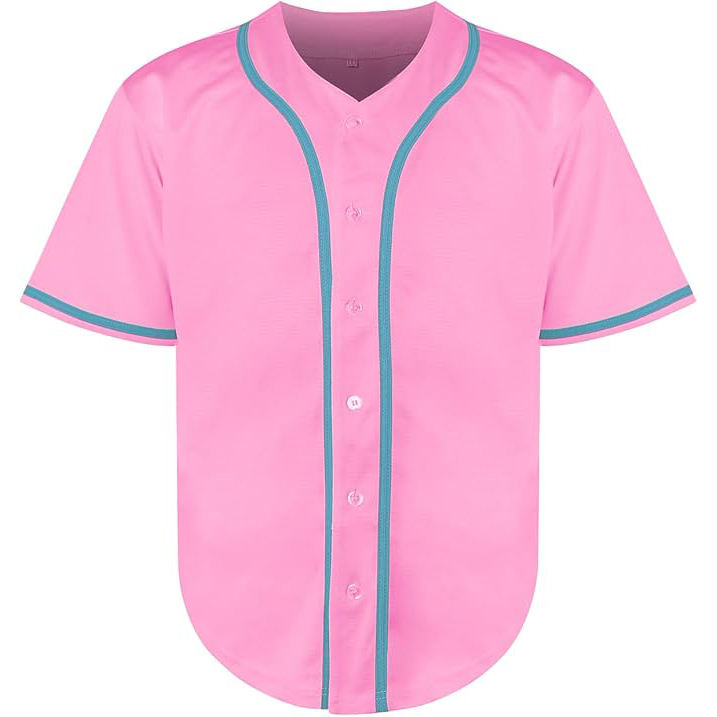 Camiseta de Béisbol Personalizada Rosa Claro con Botones y Ribete Azul Claro en Contraste, Ropa Deportiva Unisex para Adultos