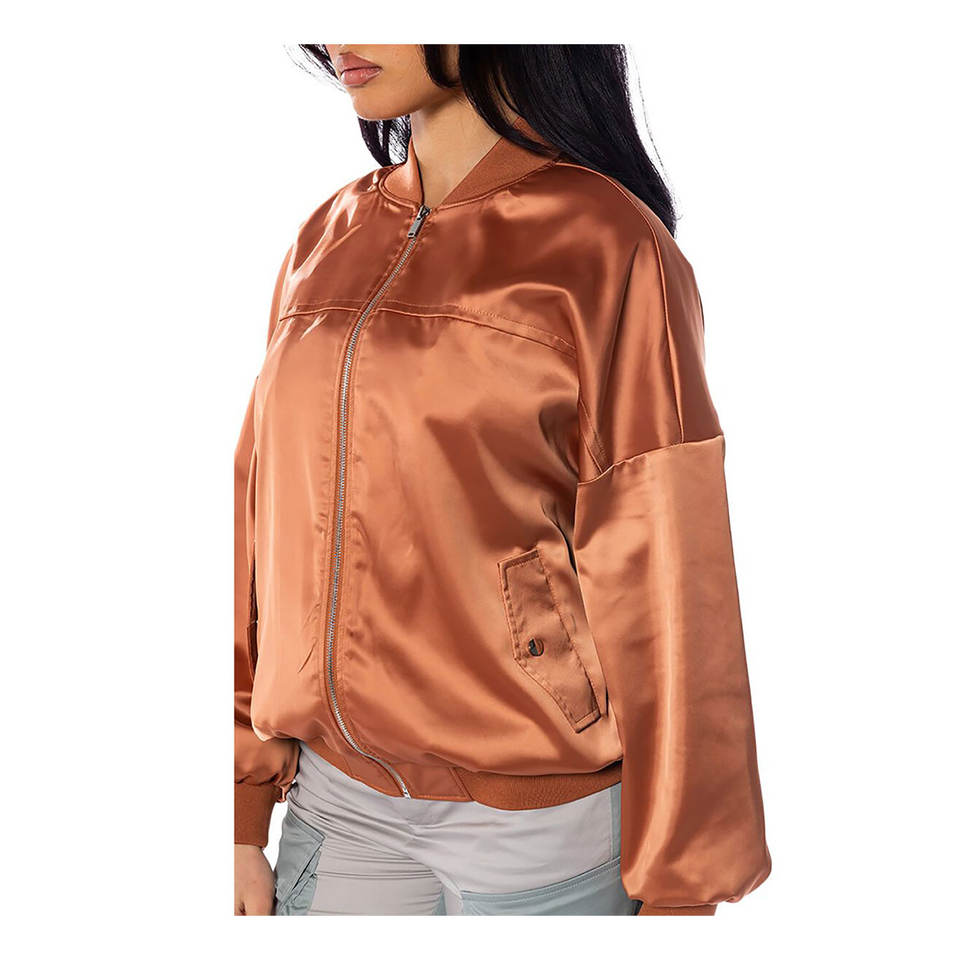 Product name:New High Quality Women Satin Bomber Jacket